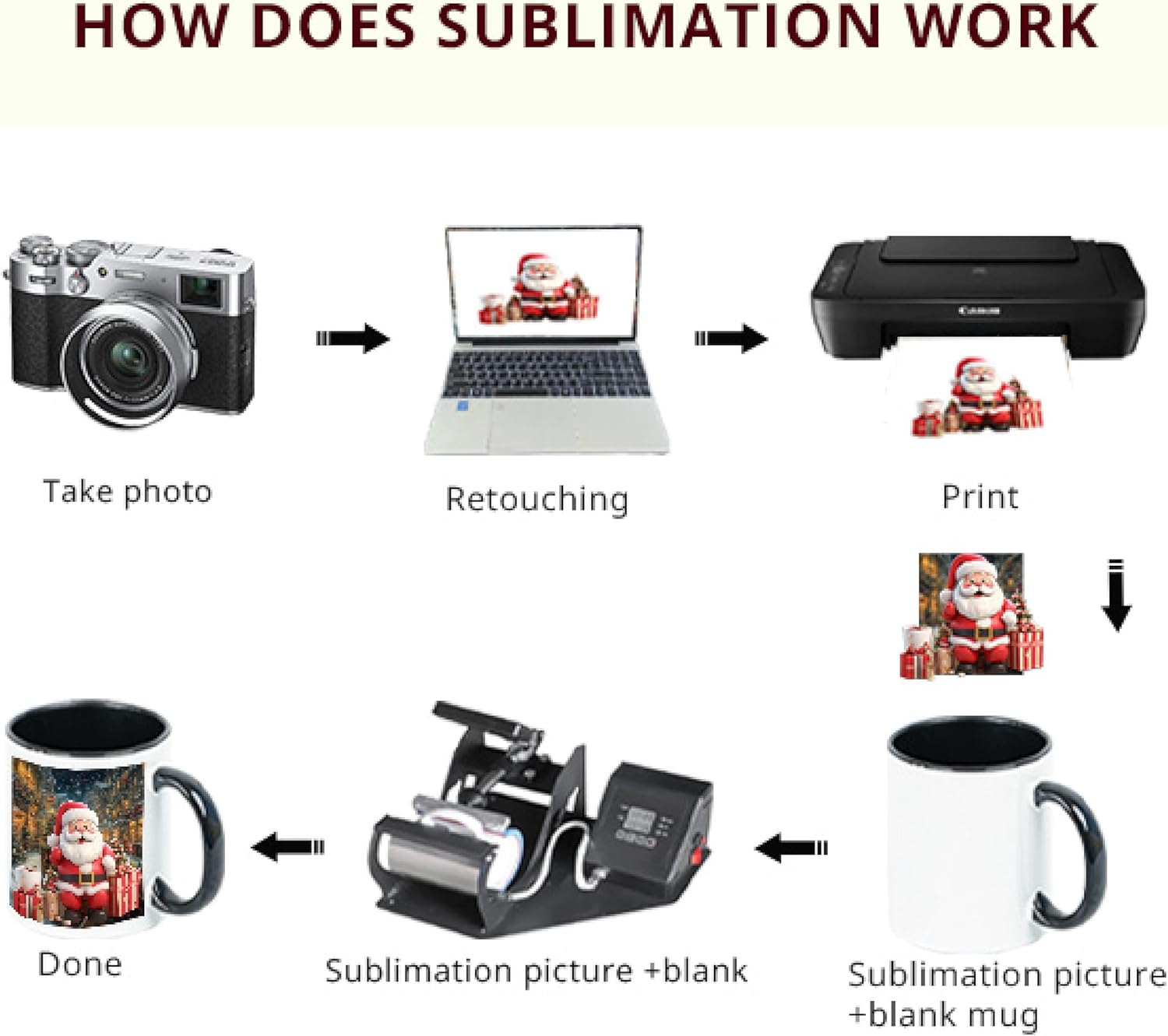 • [Customize Mugs] These Sublimation Coffee Mugs are customized for various DIY creativities, you can print anything on it through heat press! Perfect for creating photo mugs, graduation gifts, weddings, personal keepsakes, artwork showcasing, and any creative job you may want with your wrap heat press machine