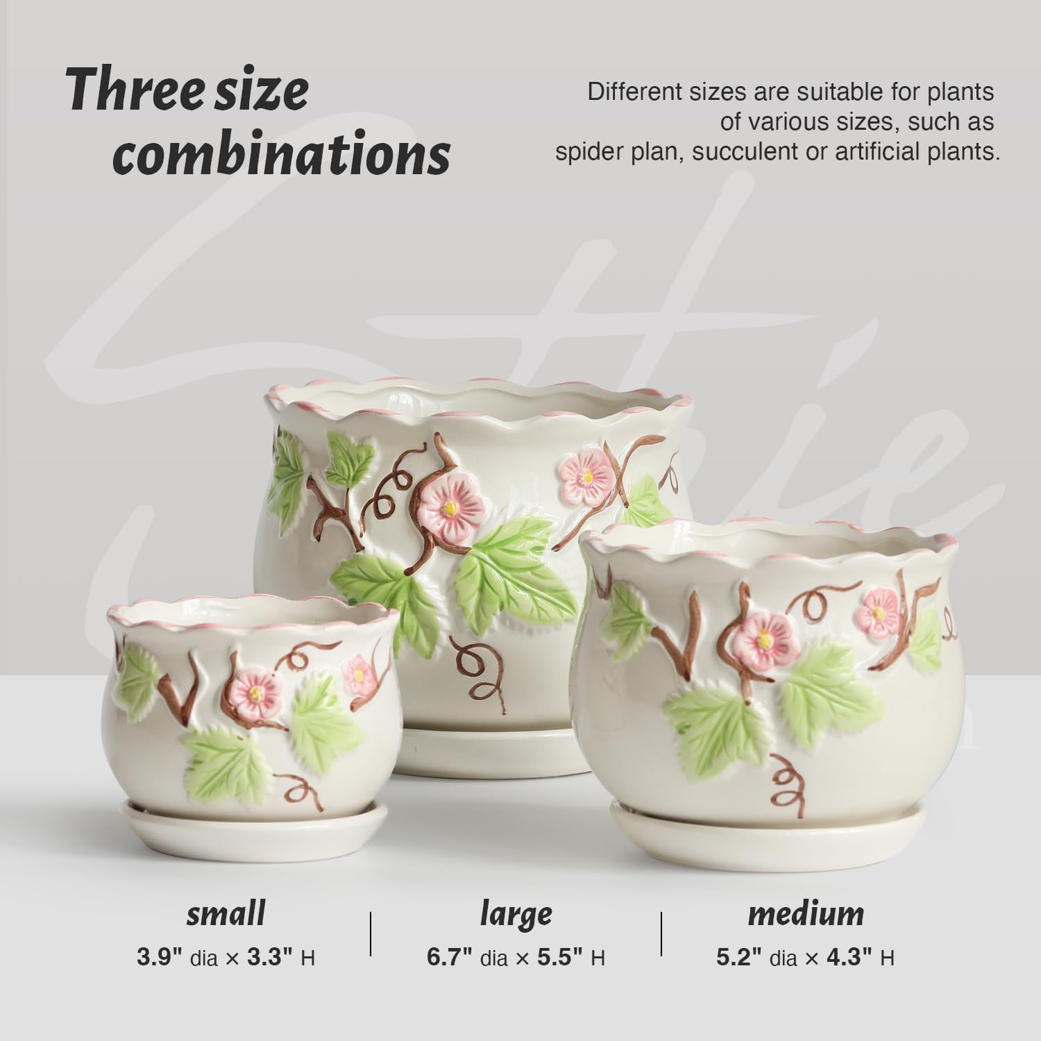 • MODERN HOME DECOR : These garden plant pots are made of ceramic and come in three sizes: Small width is 3.9 inches, Medium width is 5.2 inches, , and large width is 6.7 inches. They are fired at high temperature, so they are durable and lightweight.
