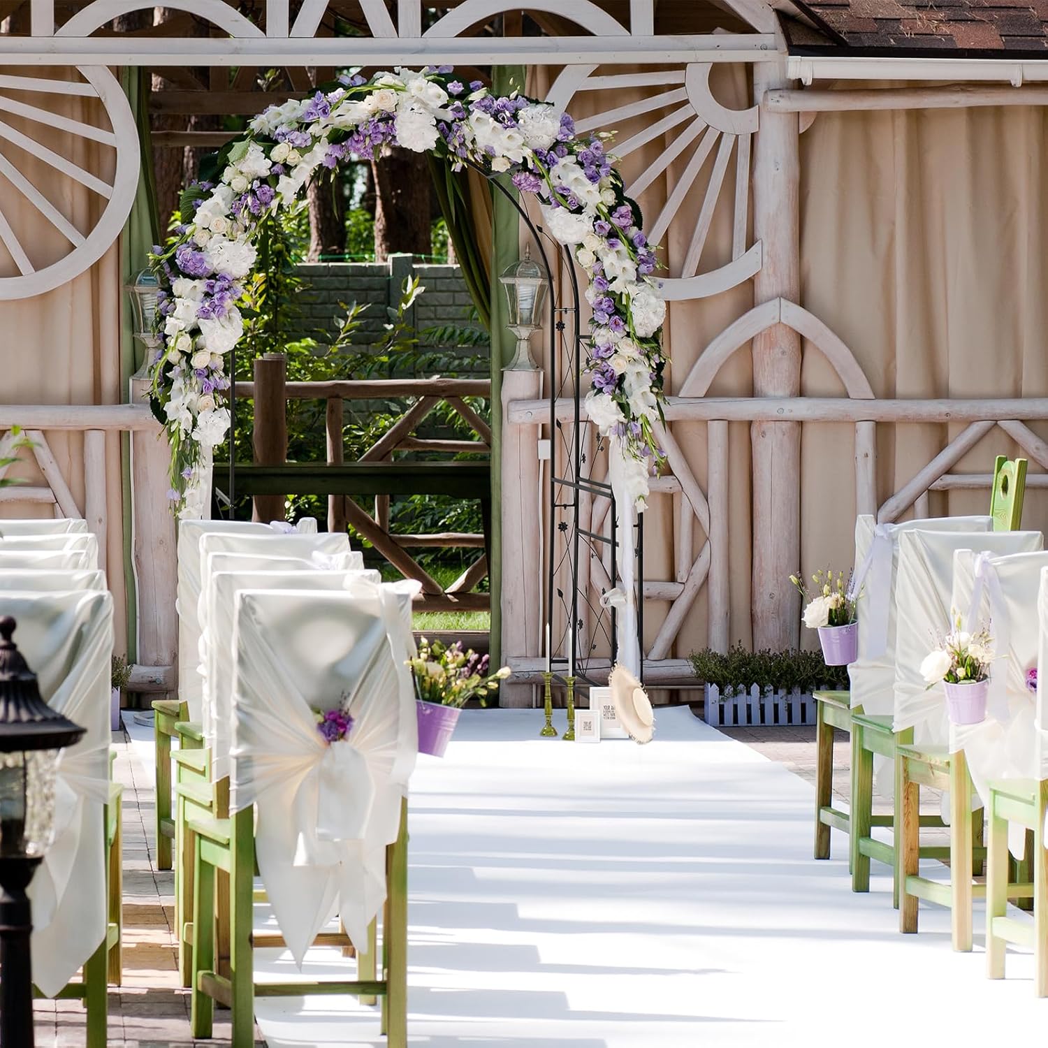 • Multi-purpose: It can be used for anniversaries or outdoor weddings. Flowers and plants can be allowed to climb. Place the arbor as an entrance or gate to instantly give it a more sophisticated and a lush look