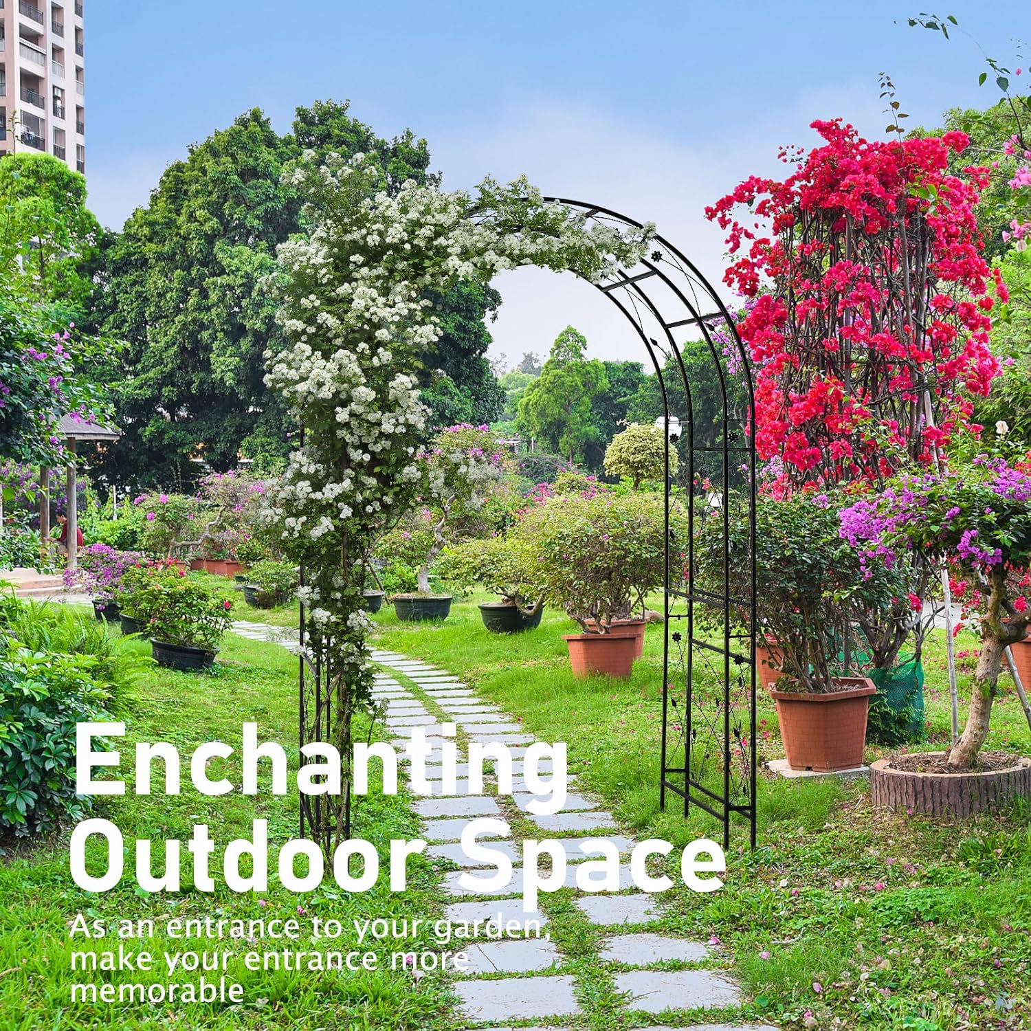 • Elegant Arch: Whether standing alone or covered with climbing vines and flowers, these outdoor metal arch add a striking focal point to your yard. Adding grace and prominence to any outdoor venue with the Arbor features squared lattice side panels