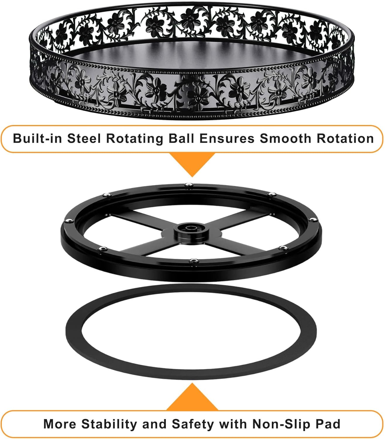 Lazy Susan Turntable Organizer, 13 inch Large Rotating Spice Rack Lazy Susan for Dining Table Top Cabinet Countertop Pantry Kitchen Cupboard Bathroom Black
