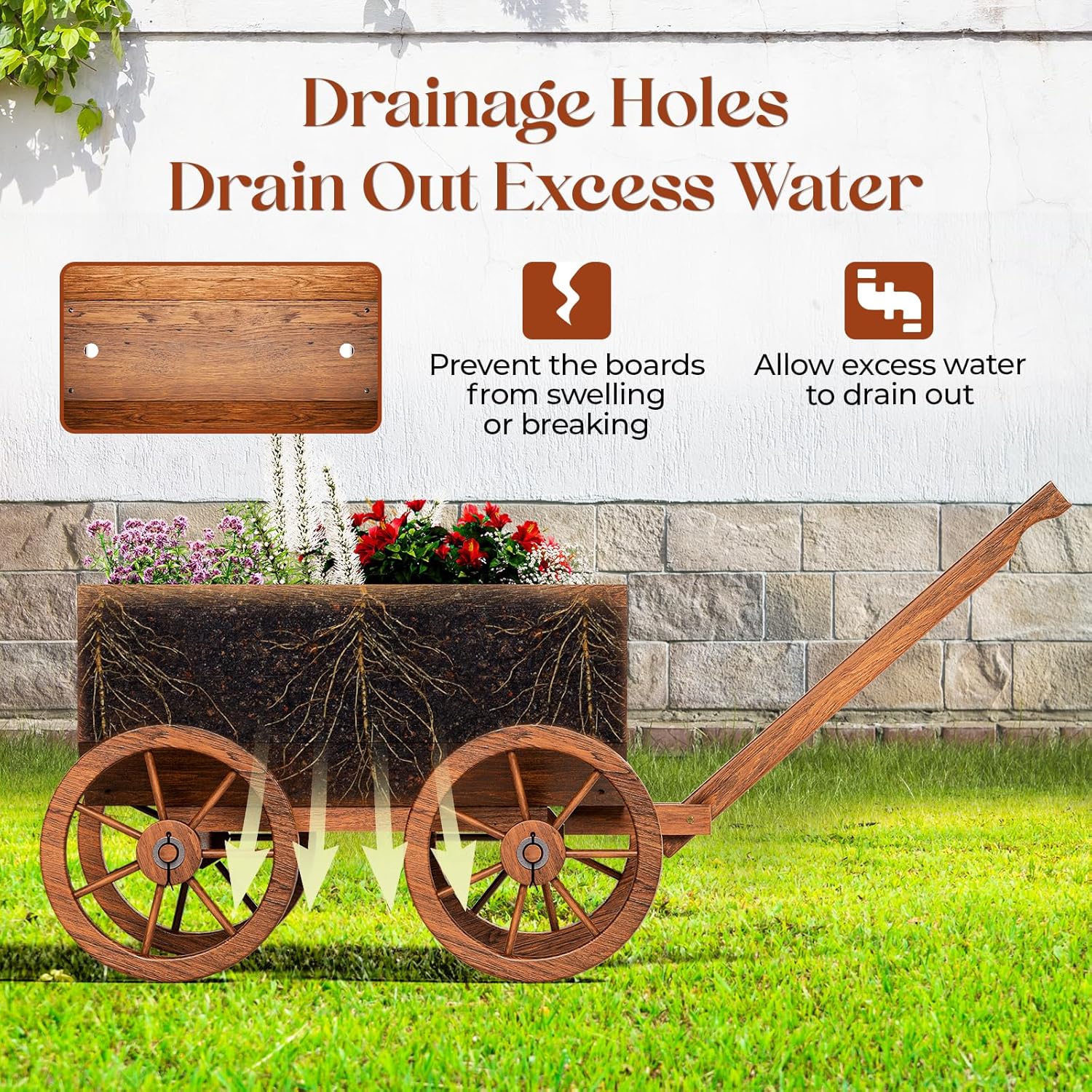 • 30% MORE CAPACITY THAN OTHERS: The planting space is larger: 27.56 "x 13.88" (instead of 24.40 "x 12" of other similar wagon planters) With this wider, longer, and deep wooden barrel planter you can grow more flowers or plants