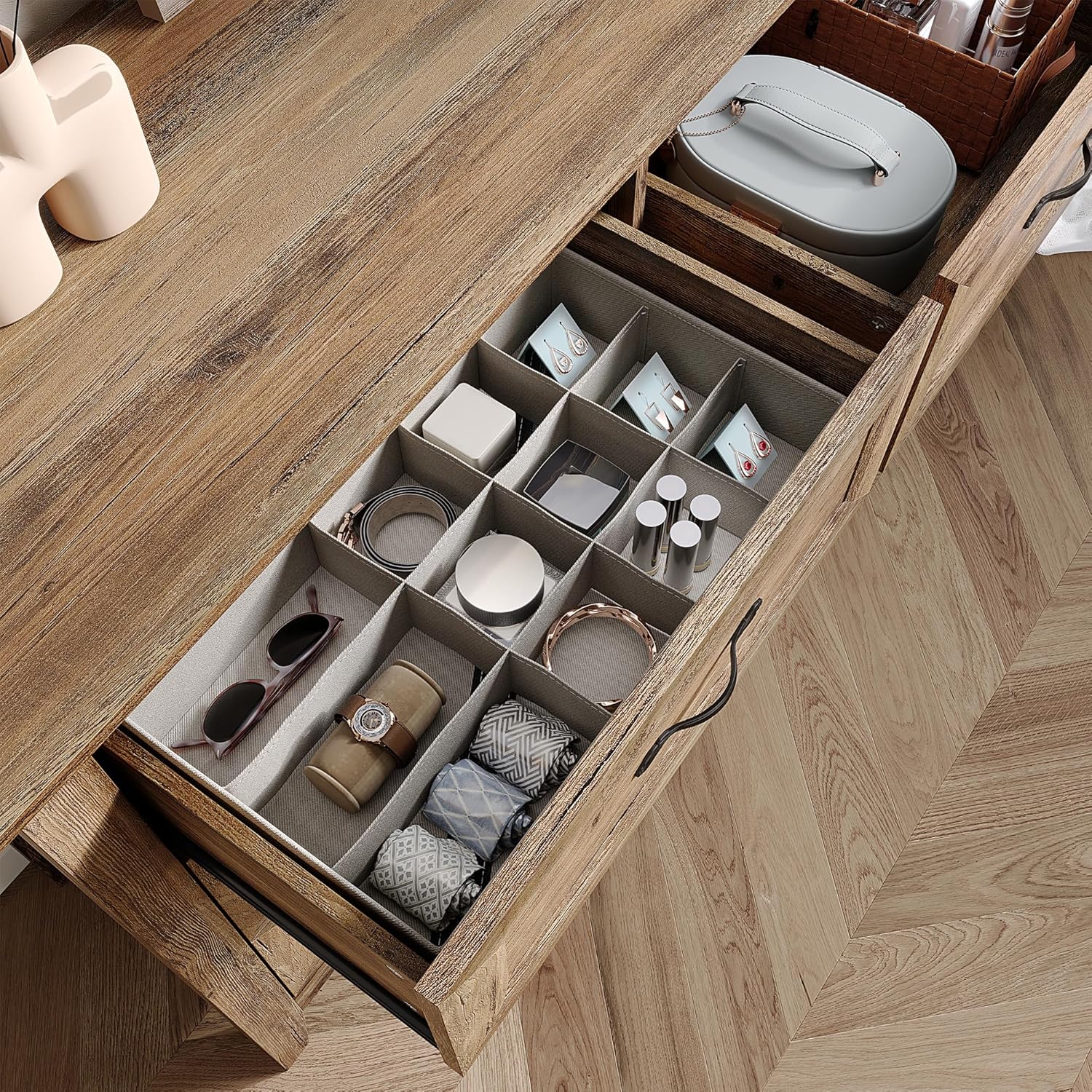 • 【Premium Material】:Made of P2 Grade Board, which is not only more cost-effective, but also environmentally sustainable. Our dresser features premium metal slides that glide smoothly and are built to last. The surface is coated with easy-to-clean and environmentally friendly paint.