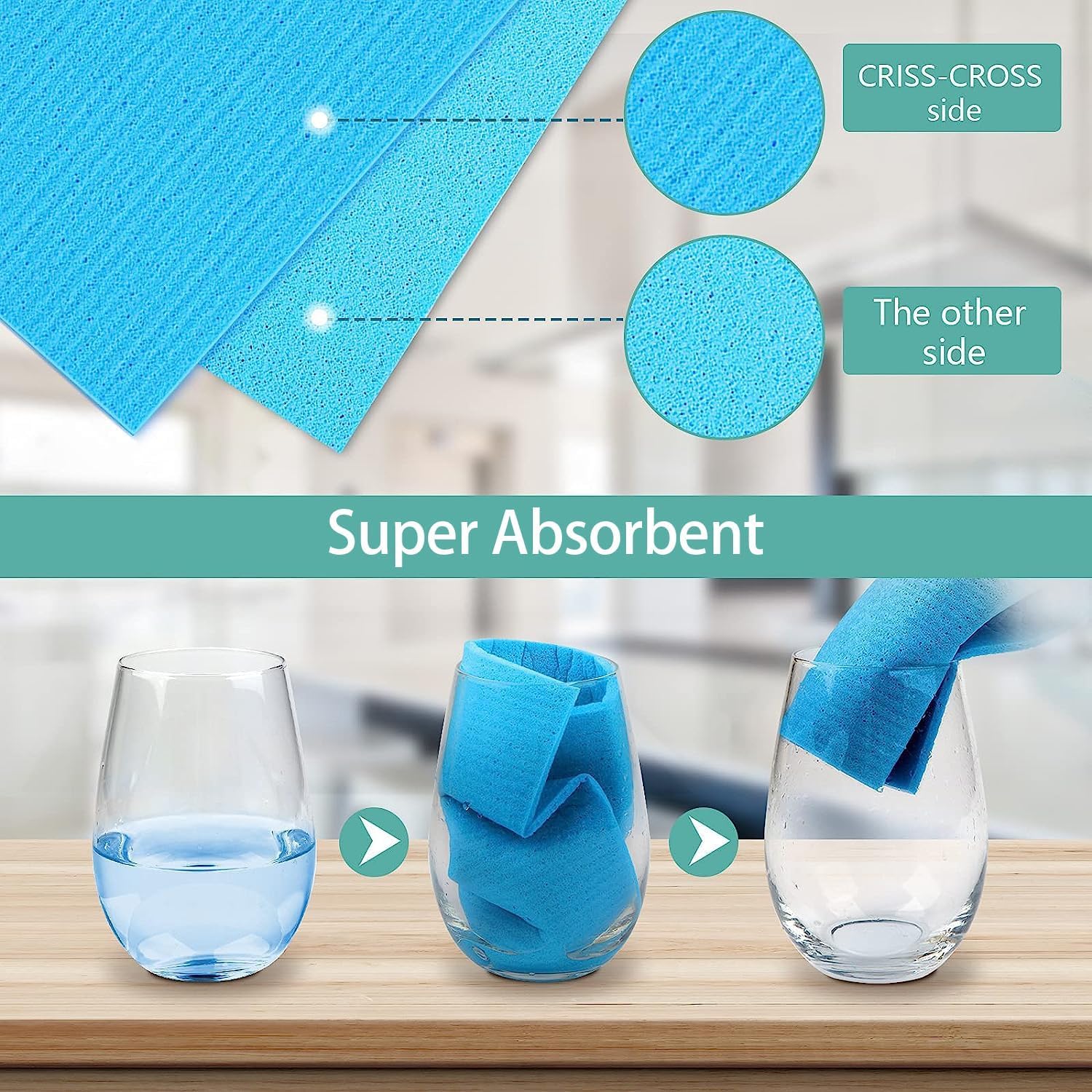 • Super Absorbent: Made from wood pulp fibers, Swedish dish cloth exhibits exceptional absorbency; it quickly absorbs liquids and moisture, allowing you to effectively deal with spills, splashes, and dampness