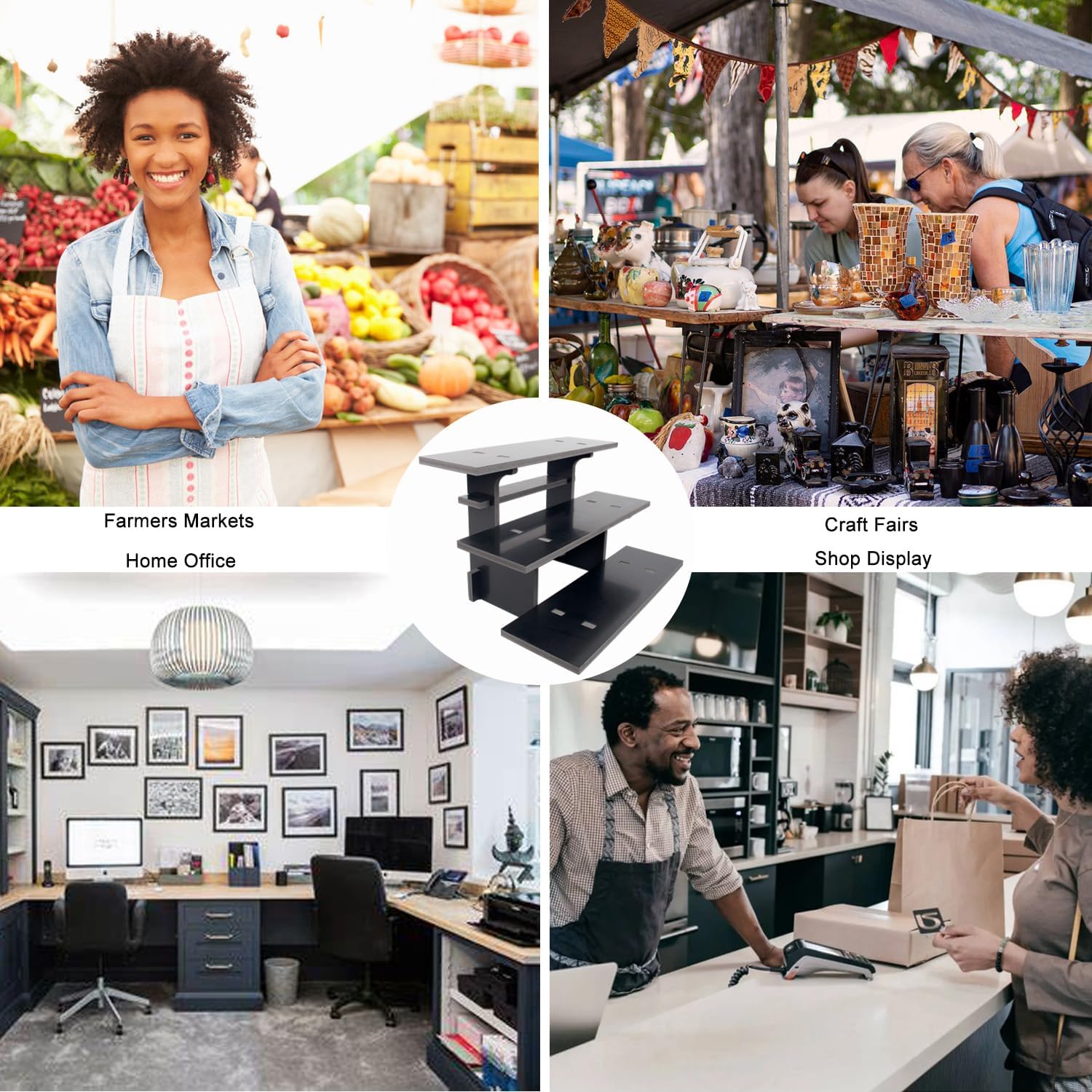• CUSTOMIZATION FRIENDLY: You can combine corner display and straight display to your desired format, customize to your exact needs this display stand! 1 set of straight display and 2 set of corner display can be combined into a set of 40 inch long 3 tier retail table risers display stands, perfect for farmers markets, craft fairs and pop up shop, vendor booth display items or office and home use!