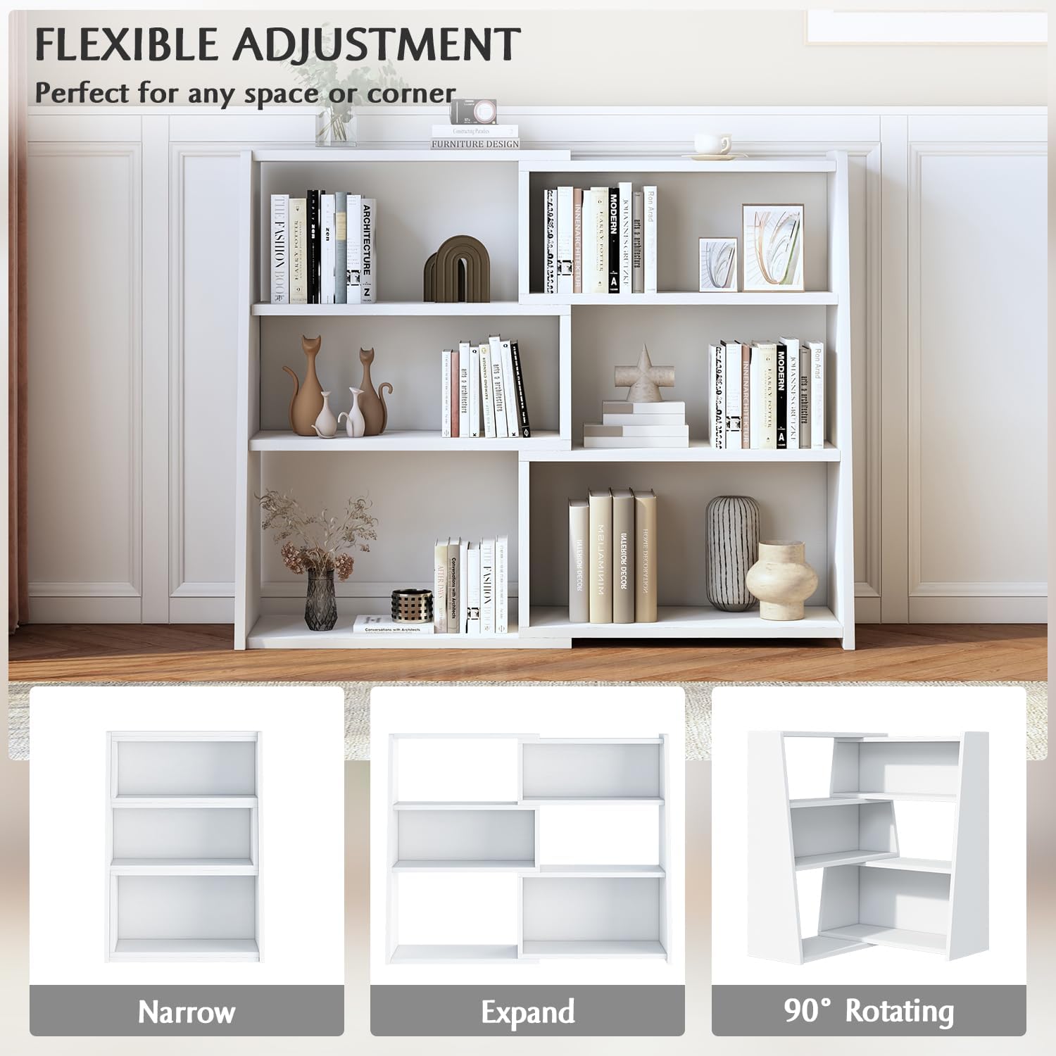 • MODULAR DESIGN: This unique bookshelf offers you ultimate flexibility in a creative way. It consists of 2 parts that you are free to lengthen, shorten, or put together at any angle you choose to fit any space or corner in your home;