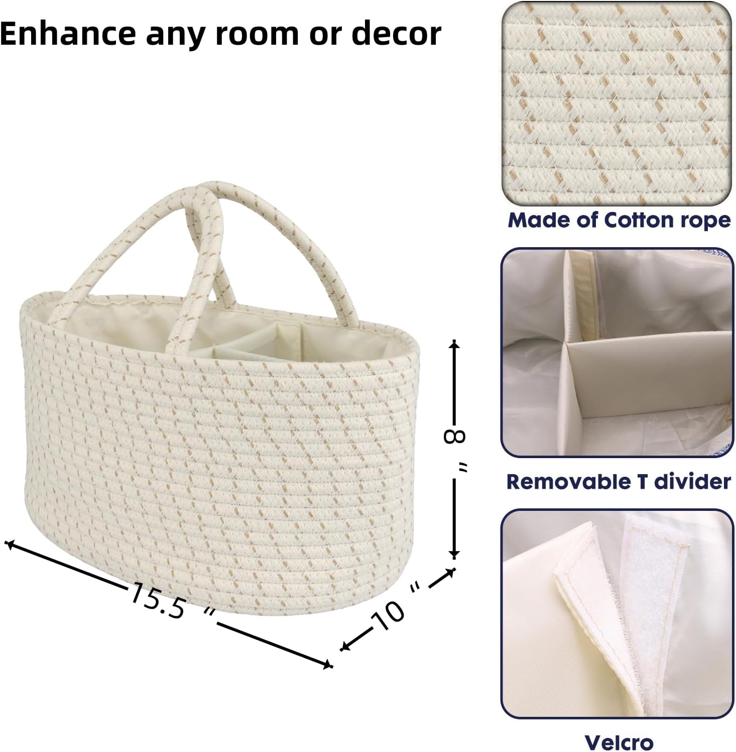 • Flexible and Portable Diaper basket with removable divider: Featuring handles for effortless transportation, our diaper change caddy includes removable dividers for personalized organization. Adjust the internal layout as needed to accommodate various baby items. Move seamlessly from room to room or take diaper organizer caddy on the go for convenient access to baby essentials.