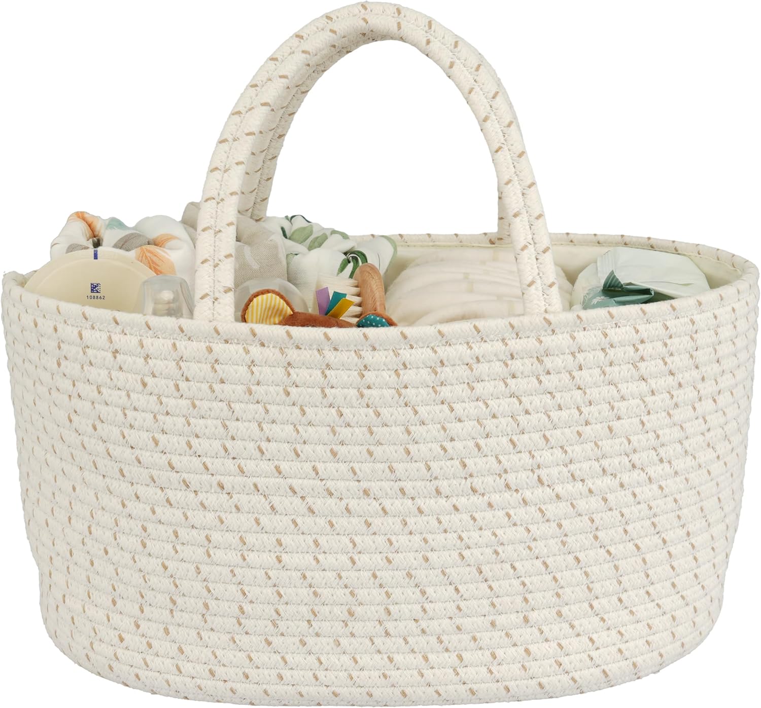 Diaper Caddy Organizer Cotton Rope Baby Basket Nursery Storage and Portable Tote Bag for Car Ideal Baby Shower Gifts and Registry Must-Have for Newborn Essentials Large striped