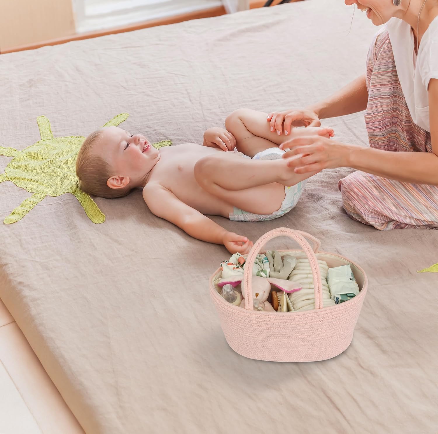 Diaper Caddy Organizer Cotton Rope Baby Basket Nursery Storage and Portable Tote Bag for Car Ideal Baby Shower Gifts and Registry Must-Have for Newborn Essentials large coral pink