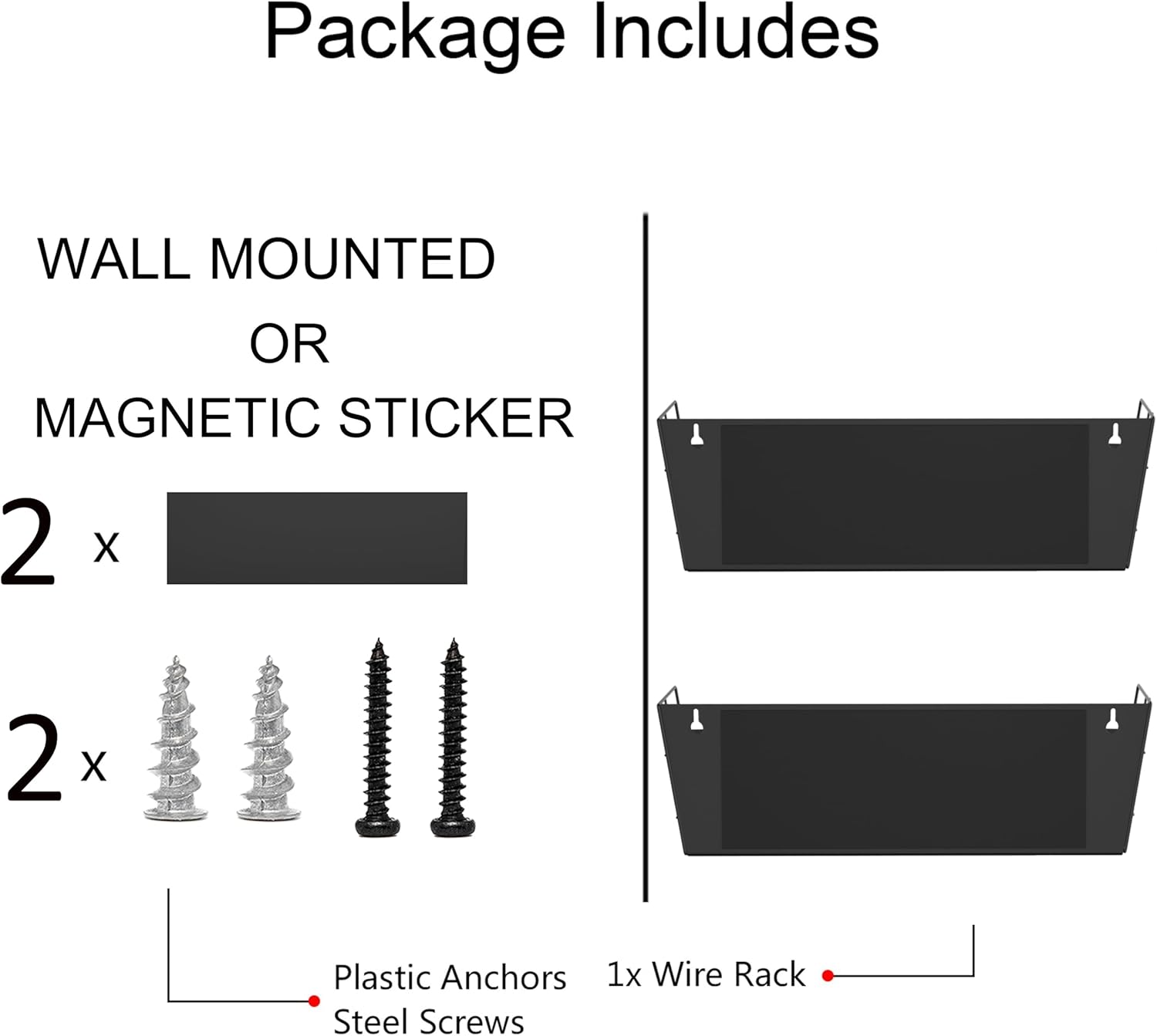 • Sturdy Quality: Storage basket are welded well with Crafted from high-quality materials,super strong magnet sticker on the back,meanwhile, the good wall mounted screws to fix her on the wall optionally , good surface with crafted painting surface durable for many years.1 shelf supports up to 12 normally spice jar,bearing up to 12 lbs.