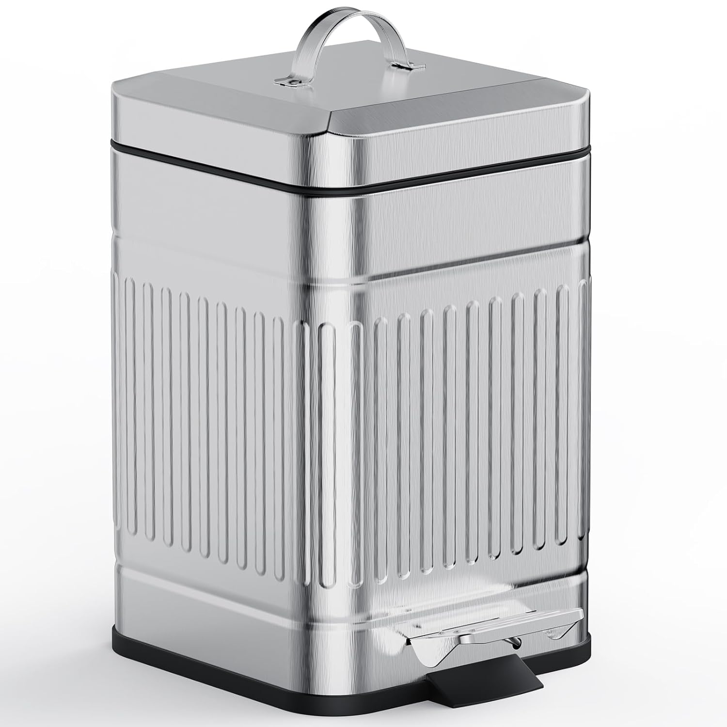 • Removable Inner Bucket: The stainless steel trash can has a plastic liner bucket with a handle and can be easily lifted out for easy dumping of garbage and rinsing quickly when needed; There is a handle on the back of the trash can to move it easier