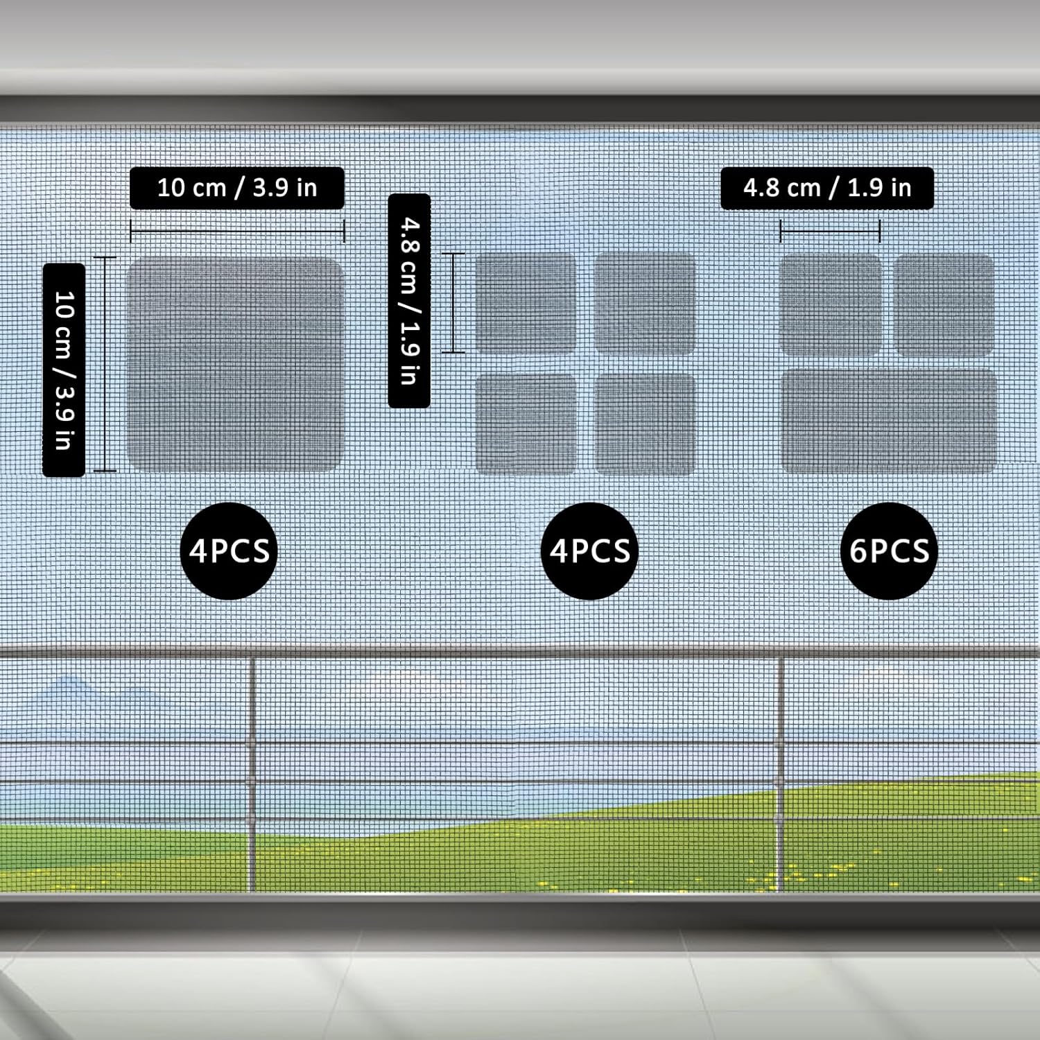 14 Sheets Window Screen Patches Repair Kit, Black 3 Sizes Window Screen Repair Kit for Mesh Screen Door, Strong Adhesive Fiberglass Quick Screen Repair Tape
