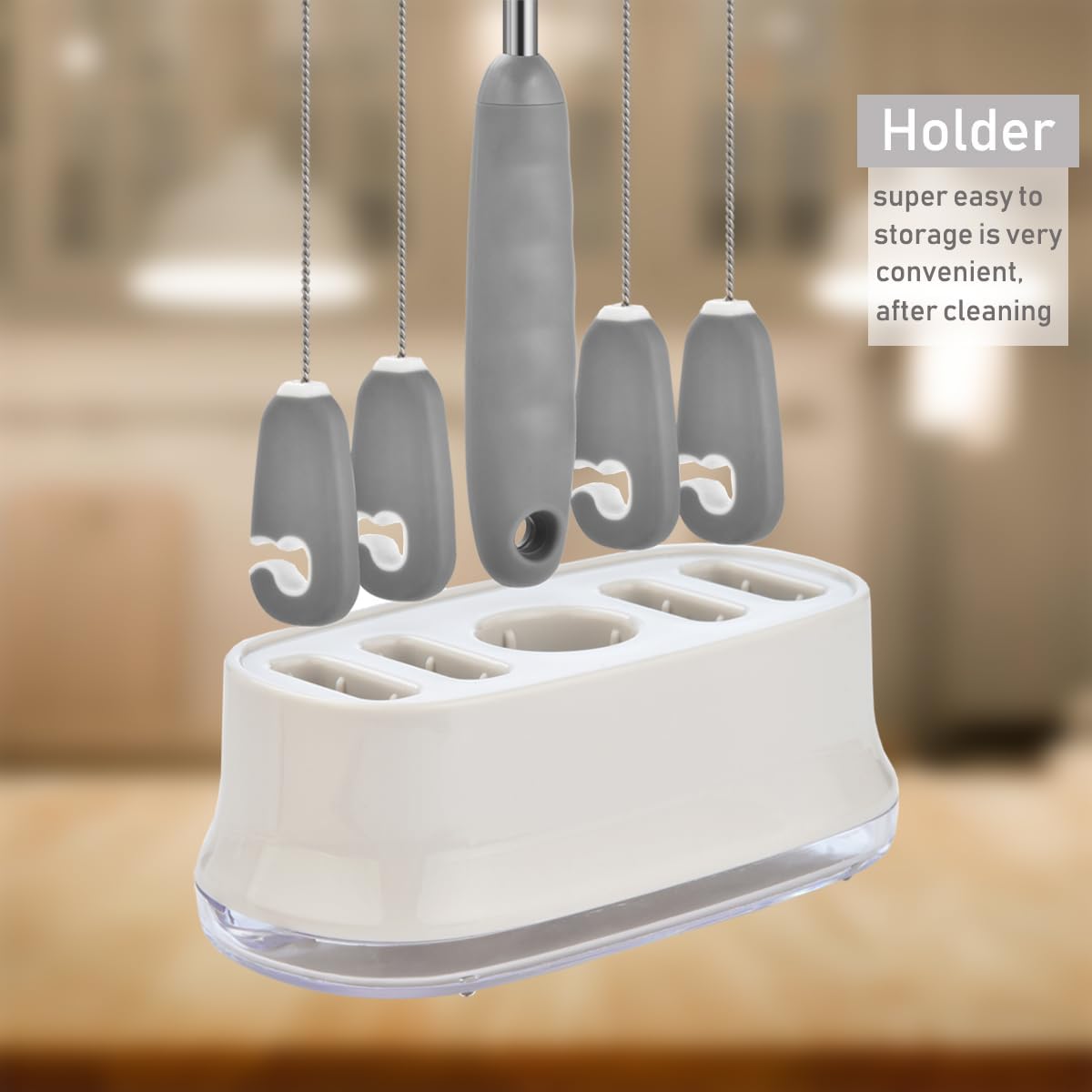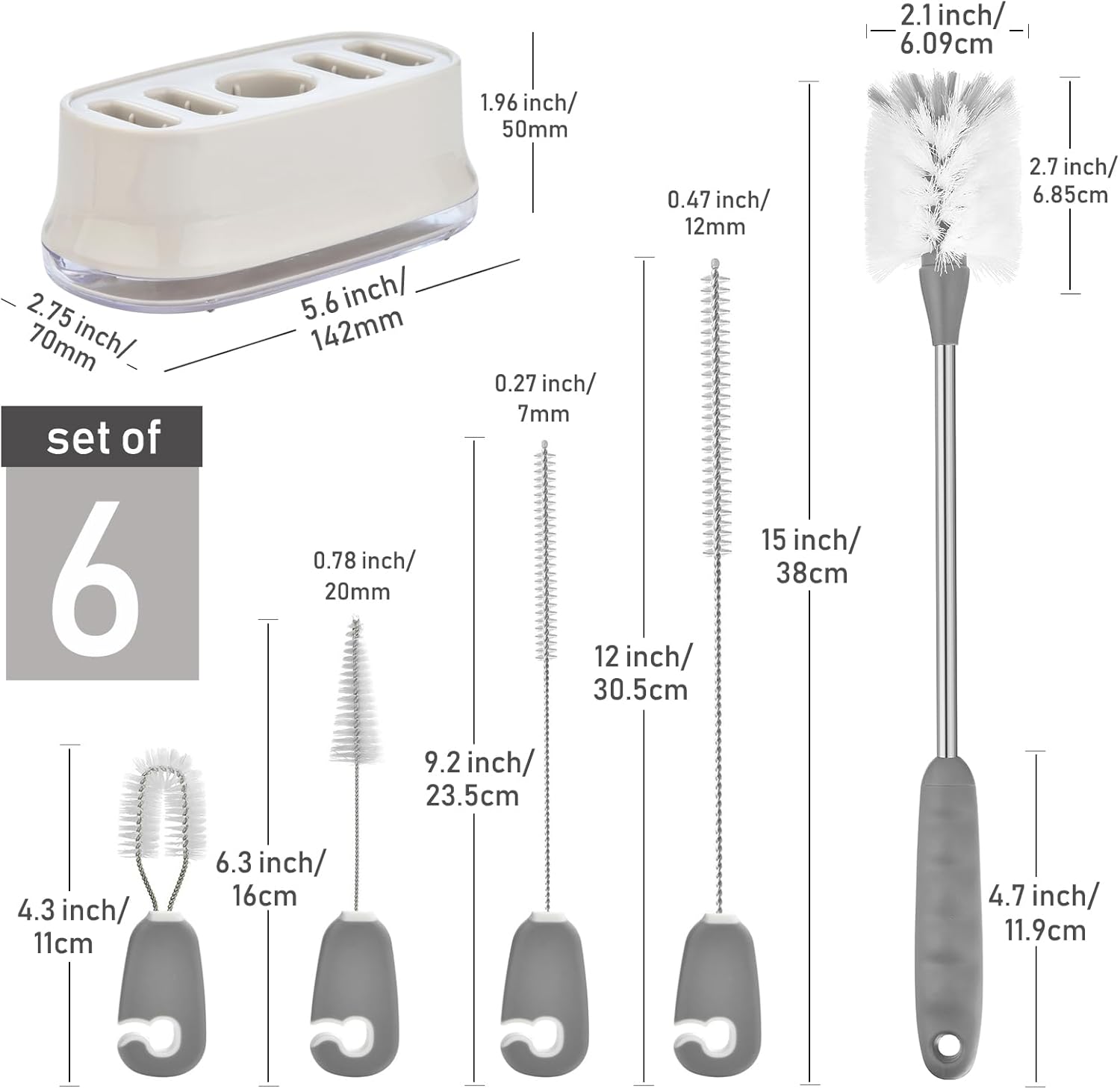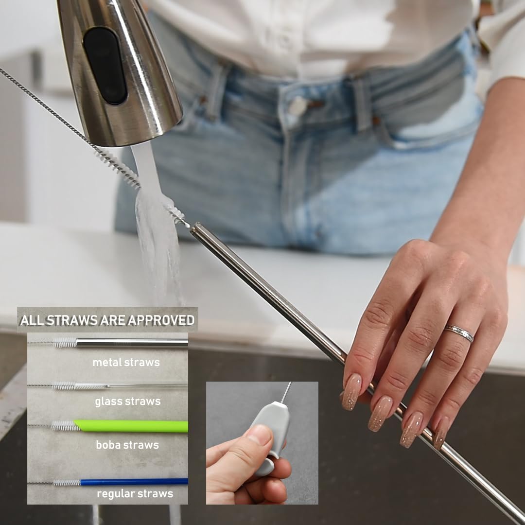 • BRUSH SET WITH HOLDER - Get 5 counts brush, 1 long bottle brush, 1 long wide straw brush, 1 narrow pipe cleaner, 1 lid brush, 1 detail brush and 1 drainage stand. This all-in-one set has everything you need to get bottles and straws squeaky clean.