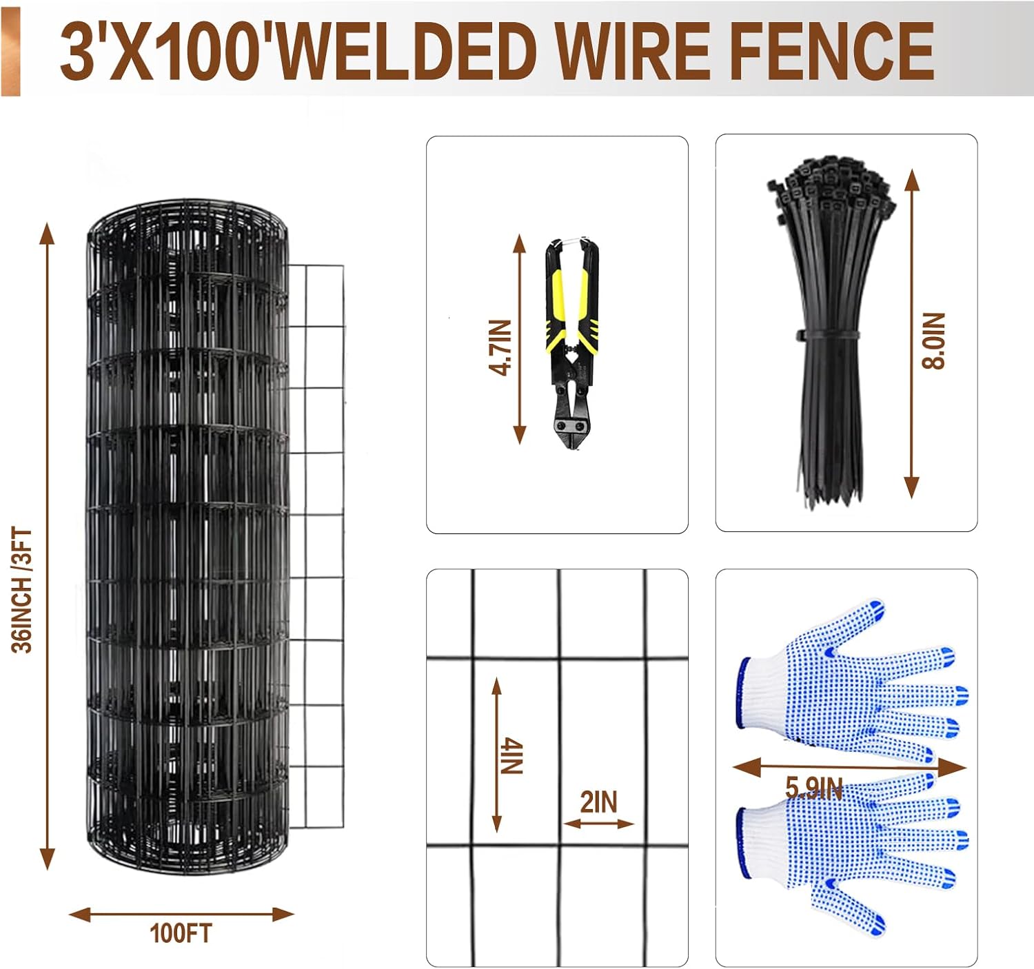 • Welded Wire Mesh Roll: This welded wire fence size is 3 ft x 100 ft and comes in a roll format, allowing you to customize its length according to your specific needs. Whether you need a short section for a small flower bed or a longer stretch to enclose an entire yard, the flexible nature of this welded wire mesh roll ensures a seamless and professional-looking installation.
