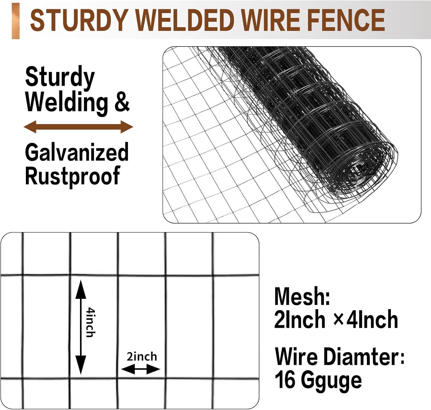 • Sturdy Welded Wire Fence: This welded wire fence manufactured using advanced welding technology to ensure that each solder joint is strong and durable,features a 16GA wire diameter, with 2 inch x 4 inch mesh openings, sturdy enough to effectively protect your yard and poultry safety.