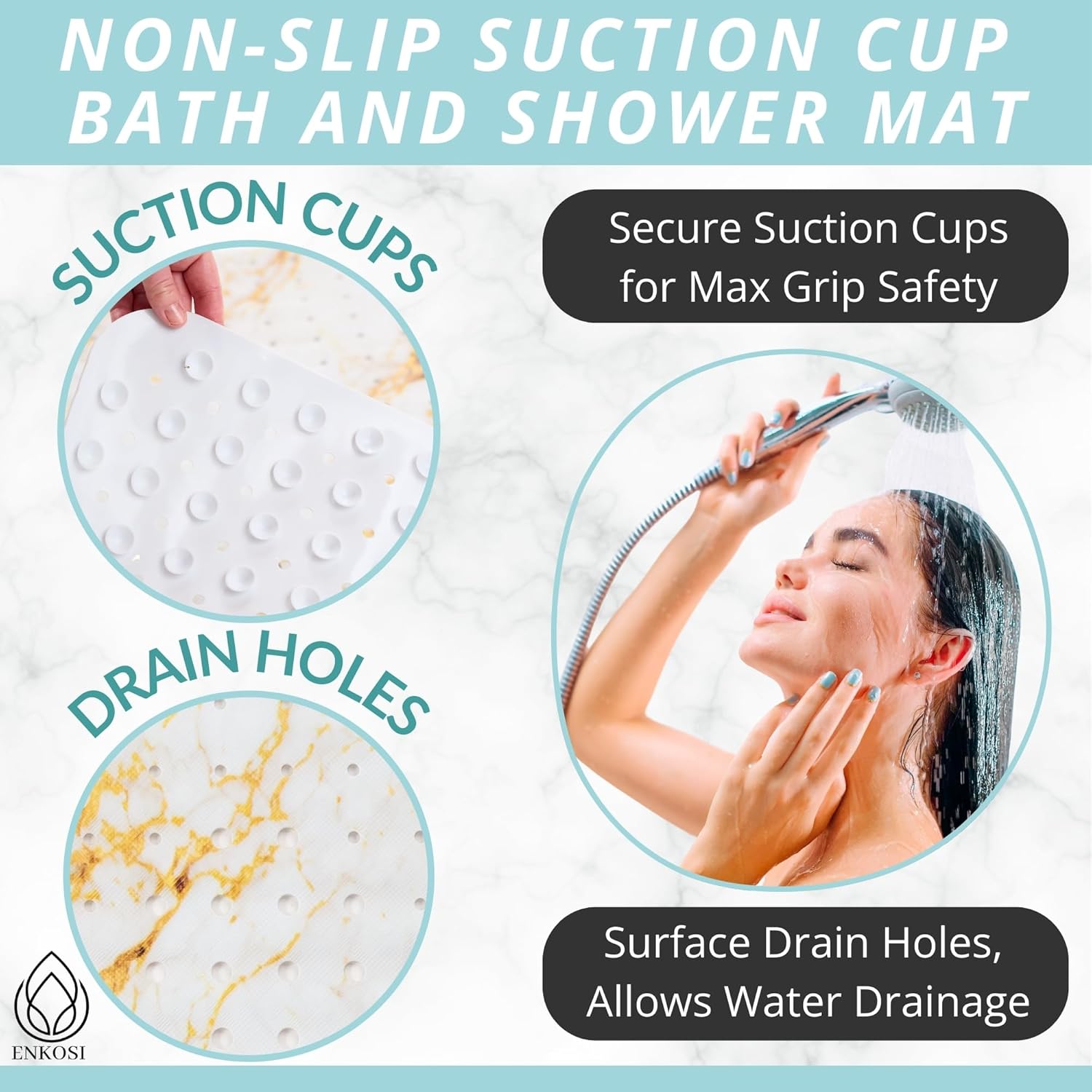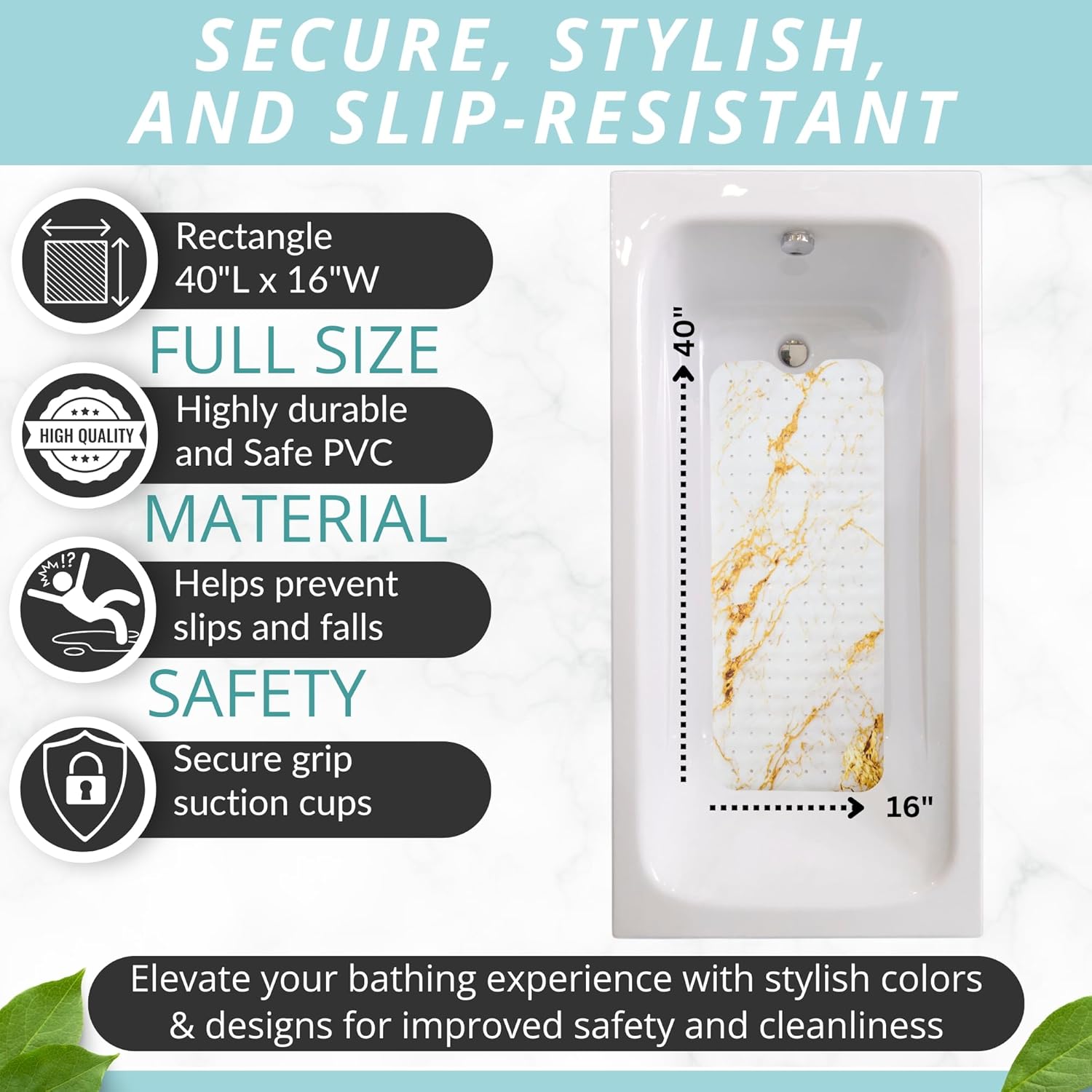 ENKOSI Bath Mat – Large 40 x 16 Inch Non-Slip Bathtub Mat with Secure Suction Cups & Drain Holes – Extra Long Bathroom Shower Mat for Tub with Marble Gold Design (40x16 Marble Gold)