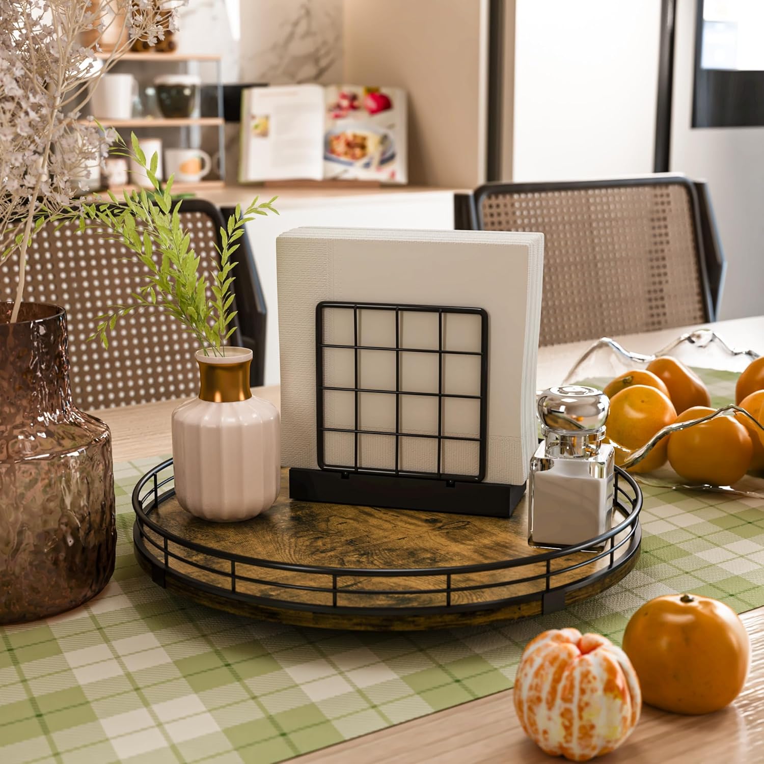 • Wide Application - The lazy susan organizer adopts handmade craftsmanship. Its MDF material is strong and long-lasting, not easy to wear and has no odor. The surface has exquisite texture, creating a unique rustic style