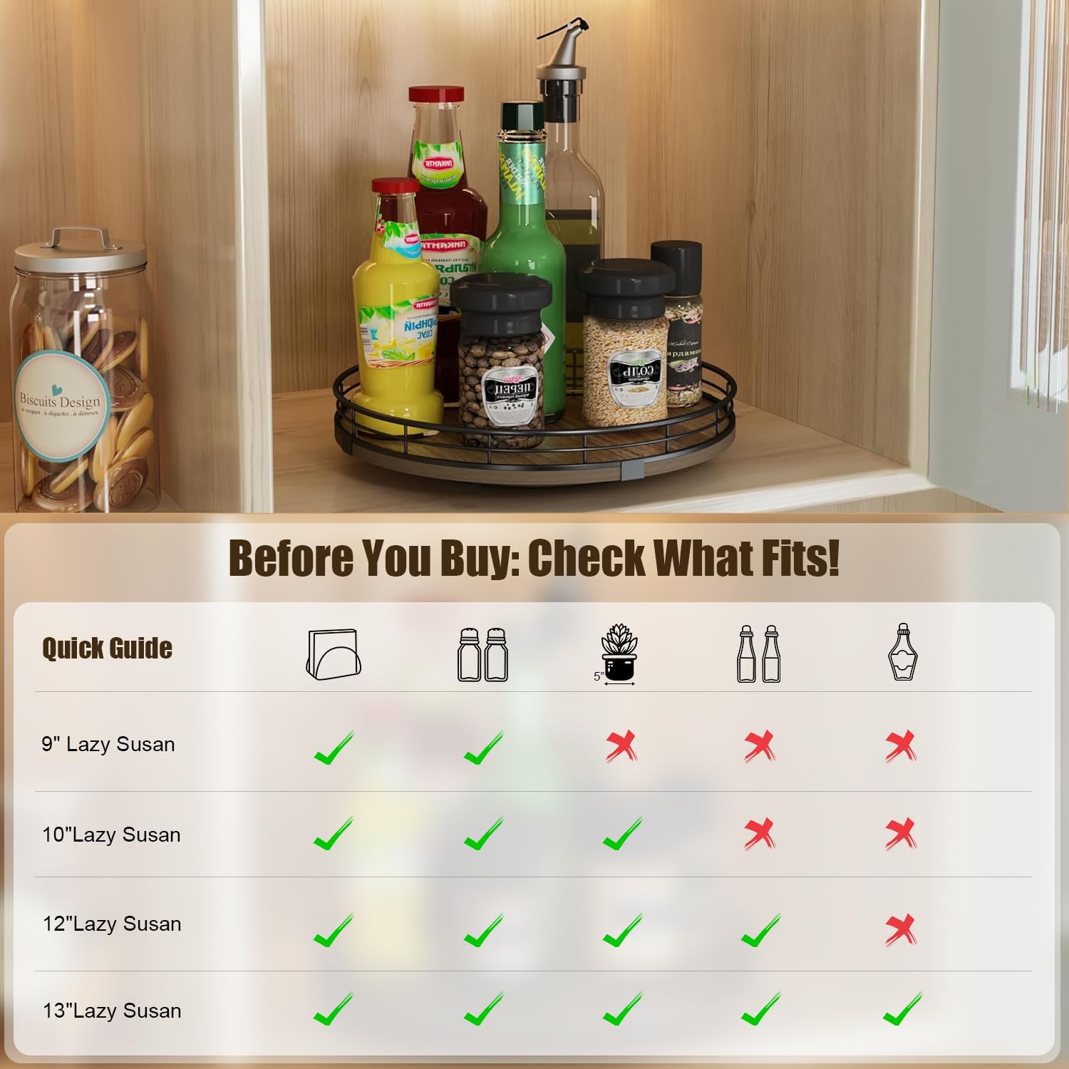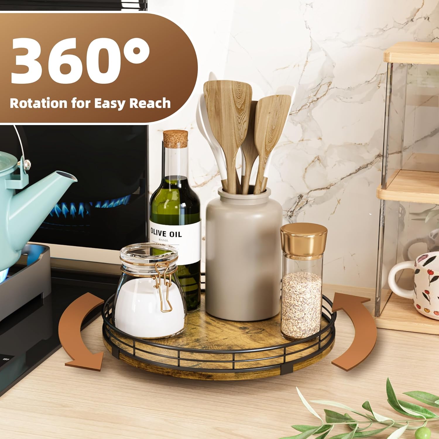 • 360°Smooth Rotation - The lazy susan turntable rotates smoothly and silently, placed next to the stove for easy access to condiments, spices, olive oil and cooking supplies. Placed next to the sink to display soap lotion. Thoughtful kitchen countertop organizers to rid your life of clutter!
