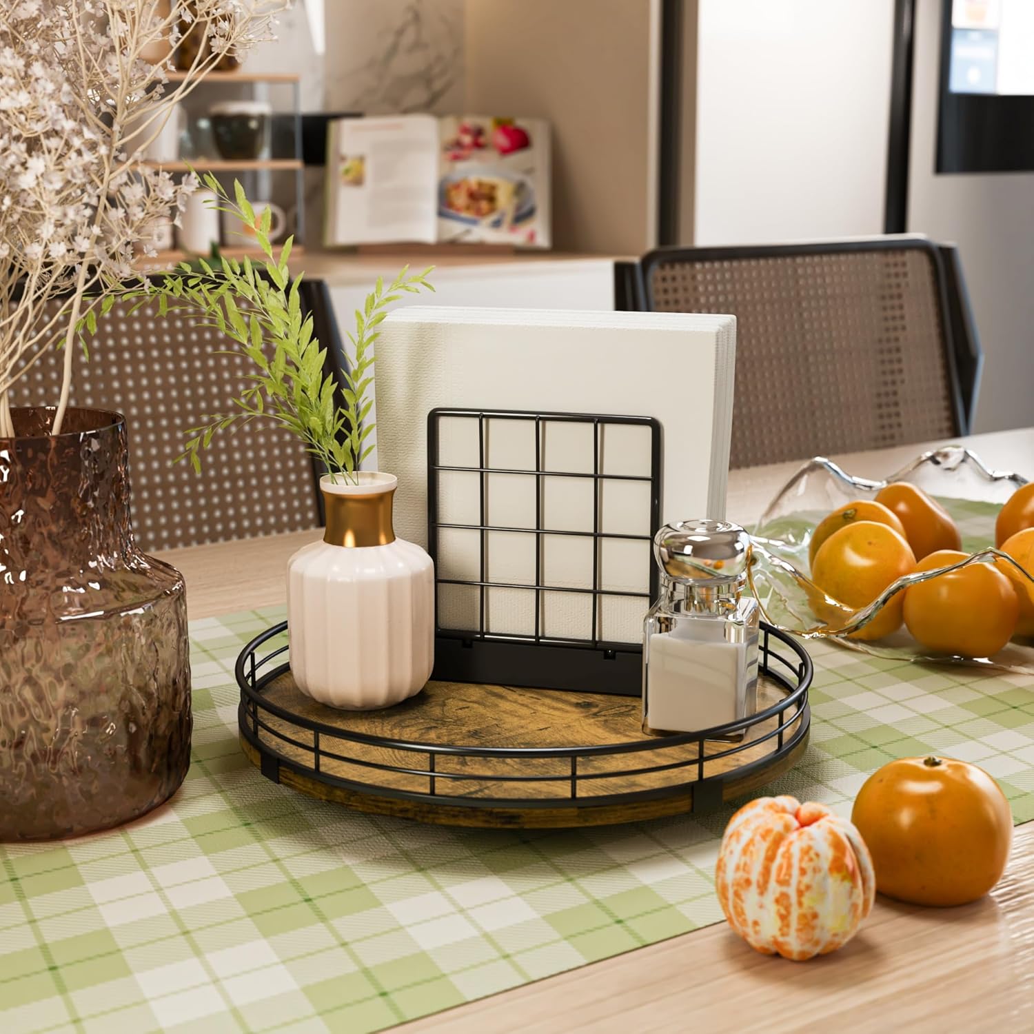 • Wide Application - The lazy susan organizer adopts handmade craftsmanship. Its MDF material is strong and long-lasting, not easy to wear and has no odor. The surface has exquisite texture, creating a unique rustic style