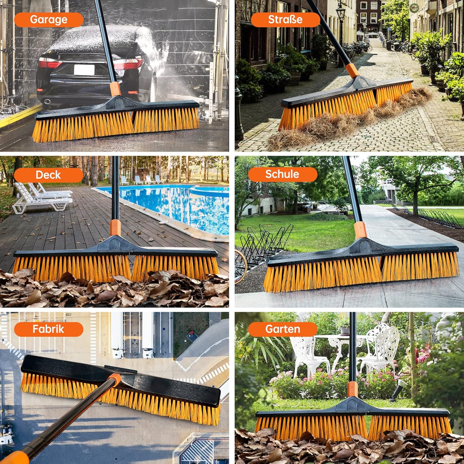 • Heavy Duty Push Broom Outdoor: You can use the outdoor brooms for sweeping patio,shop, garage, yard, garden, deck, concrete as a industrial broom or household broom.