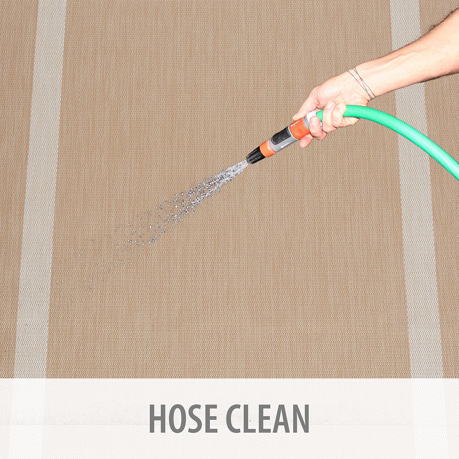 • [ WASHABLE: ] You can vacuum with a vacuum cleaner indoors and you can wash with a hose outdoors. To wash an outdoor rug, spray the surface with a 5-1 mixture of mild dish soap and water and then rise with a hose.