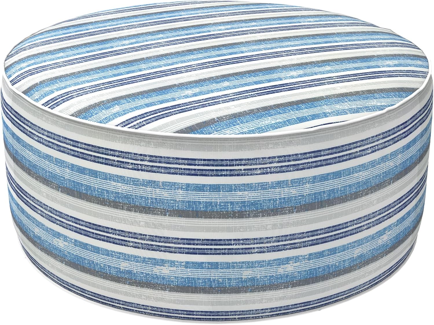 LVTXIII Outdoor Inflatable Ottoman, Fade-Resistant Round Footrest Stool D31”x H14”, Portable Patio Pouf for Garden Camping or Home Use, Stripe Layered Blue