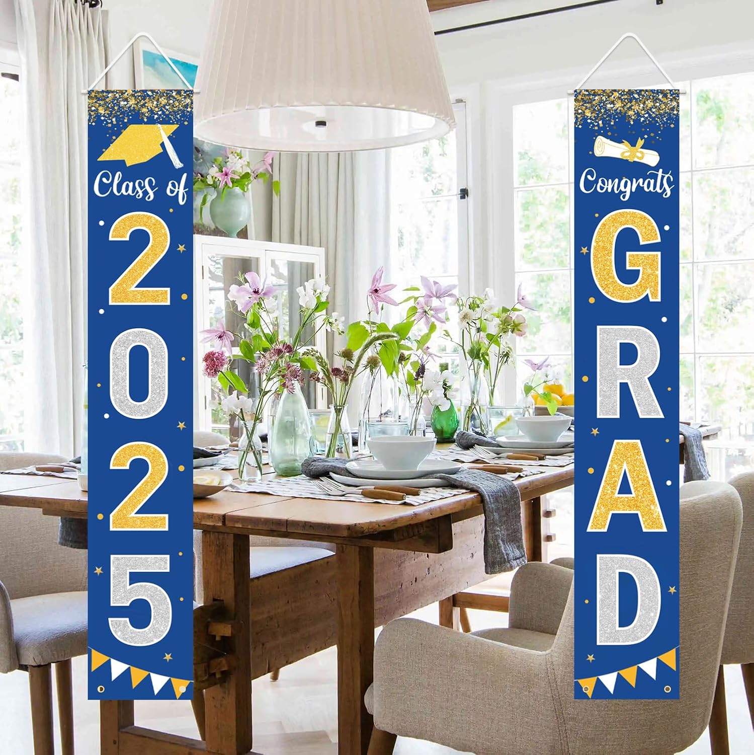 • Graduation Decorations Banner: Easy but festive graduation decorations. Pre-assembled to decorate front door, porch, fireplace, garage, patio, home, office, indoor and outdoor easily.