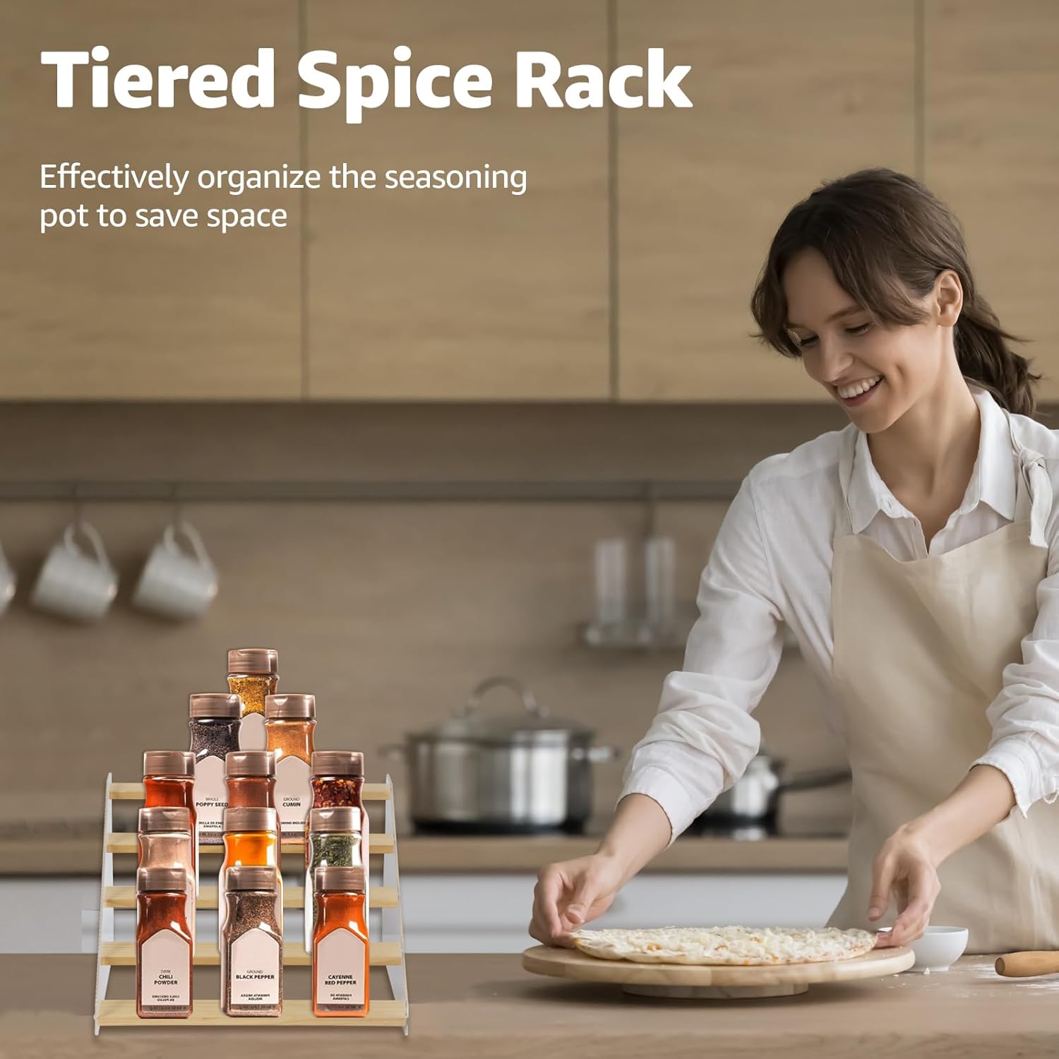 • Elegant & Sturdy: Risers display stands constructed from high-quality pine wood and corrugated acrylic, making it both aesthetically pleasing and fashionable, as well as durable and resistant to deformation, the spice shelf is a beautiful and robust addition to any space
