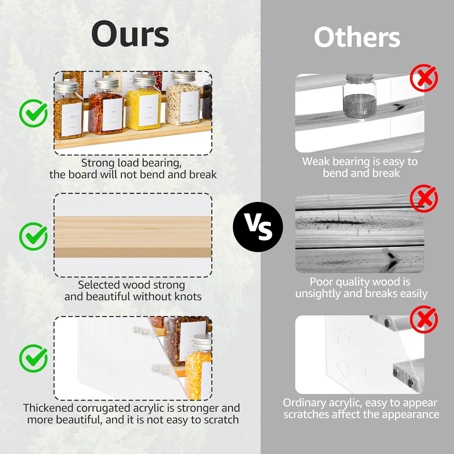 • Elegant & Sturdy: Risers display stands constructed from high-quality pine wood and corrugated acrylic, making it both aesthetically pleasing and fashionable, as well as durable and resistant to deformation, the spice shelf is a beautiful and robust addition to any space