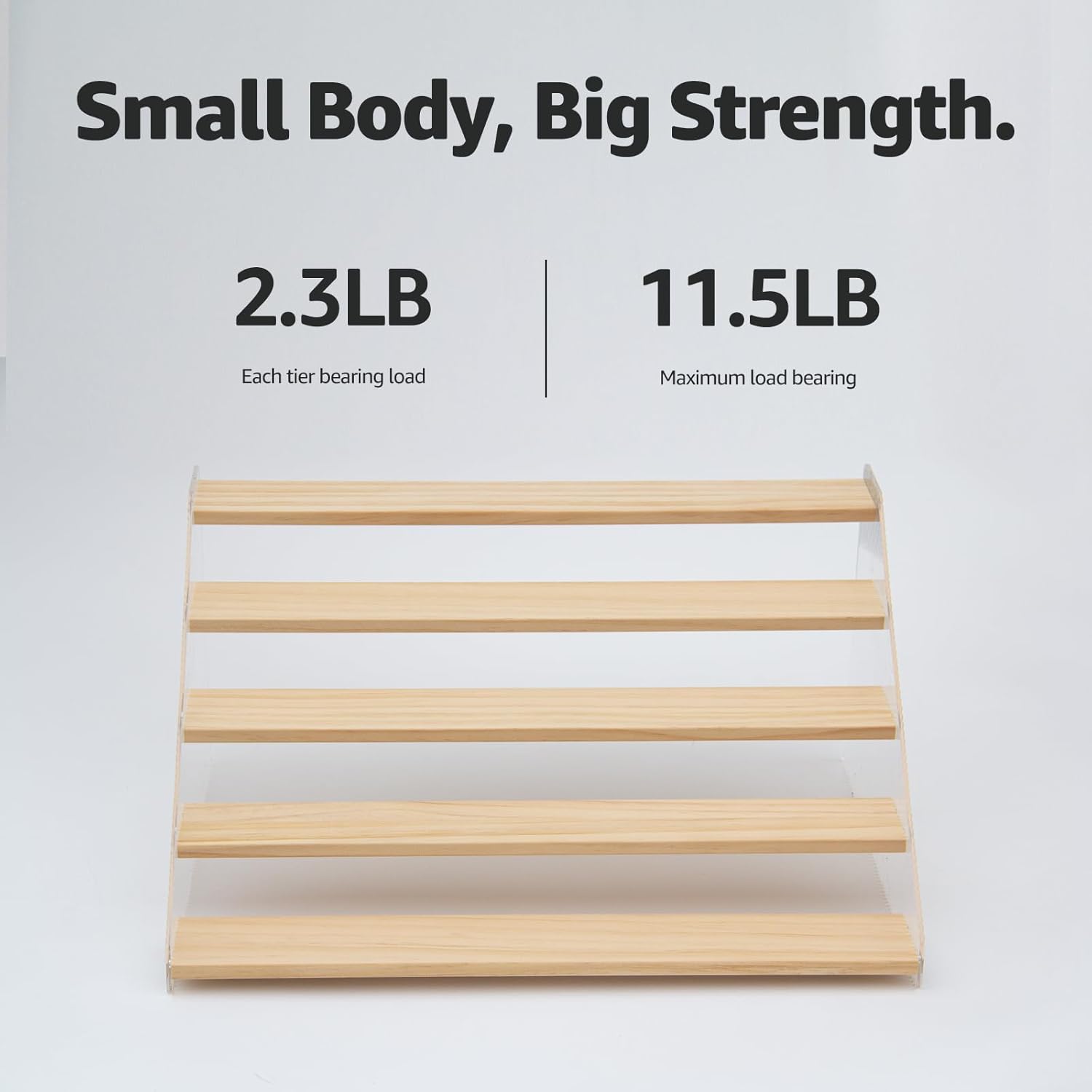 • Elegant & Sturdy: Risers display stands constructed from high-quality pine wood and corrugated acrylic, making it both aesthetically pleasing and fashionable, as well as durable and resistant to deformation, the spice shelf is a beautiful and robust addition to any space