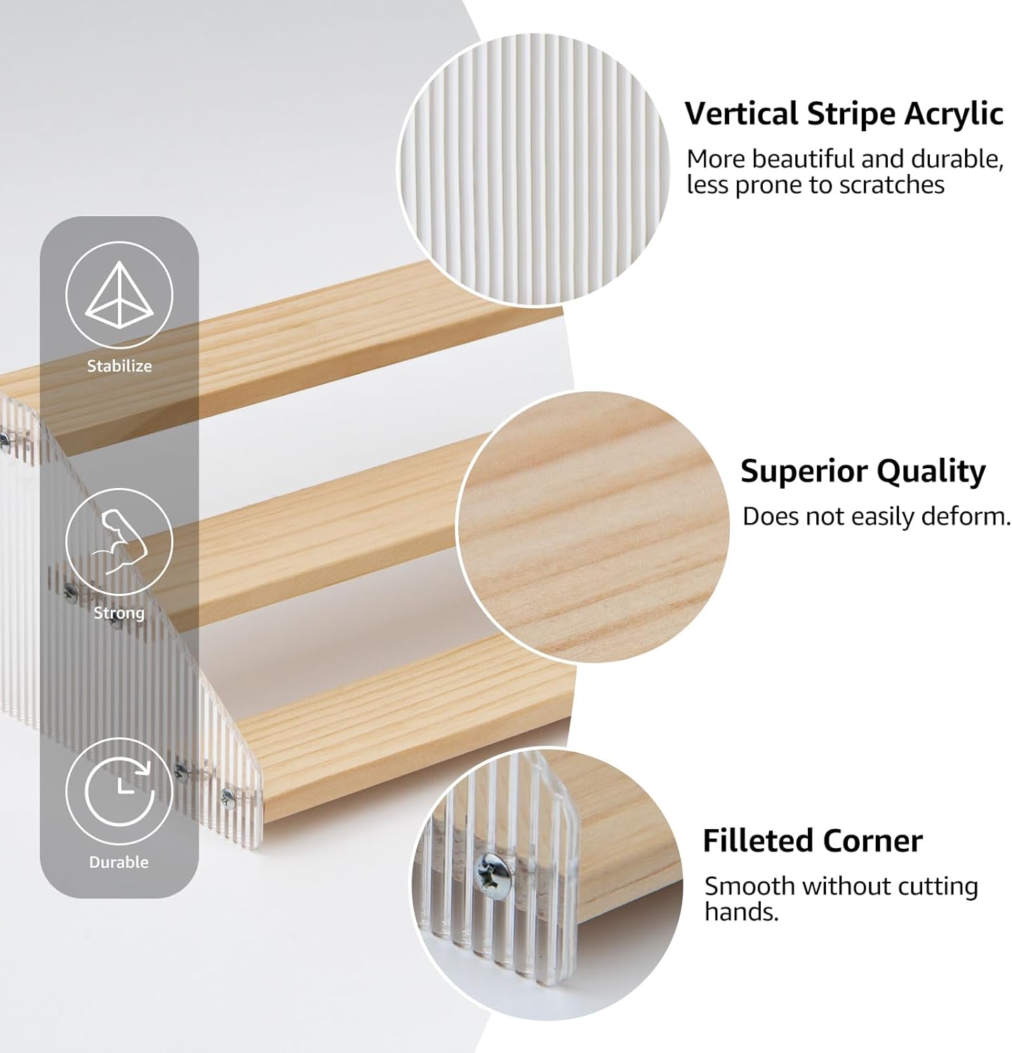 • Elegant & Sturdy: Risers display stands constructed from high-quality pine wood and corrugated acrylic, making it both aesthetically pleasing and fashionable, as well as durable and resistant to deformation, the spice shelf is a beautiful and robust addition to any space
