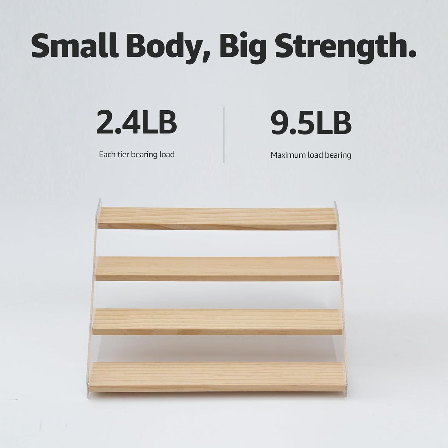 • Elegant & Sturdy: Risers display stands constructed from high-quality pine wood and corrugated acrylic, making it both aesthetically pleasing and fashionable, as well as durable and resistant to deformation, the spice shelf is a beautiful and robust addition to any space