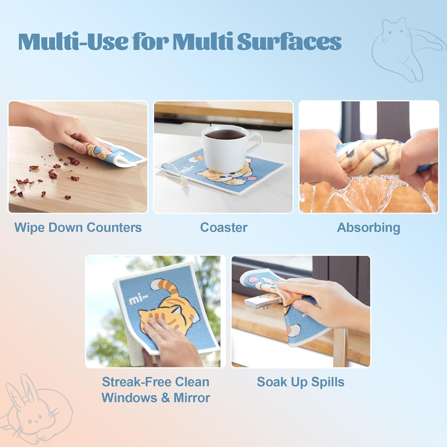 • [Update Larger Size] Comes in 1pack of 12pcs with 3 different cartoon designs , measuring 6.7" x 7.9" each. Tackle different housework!