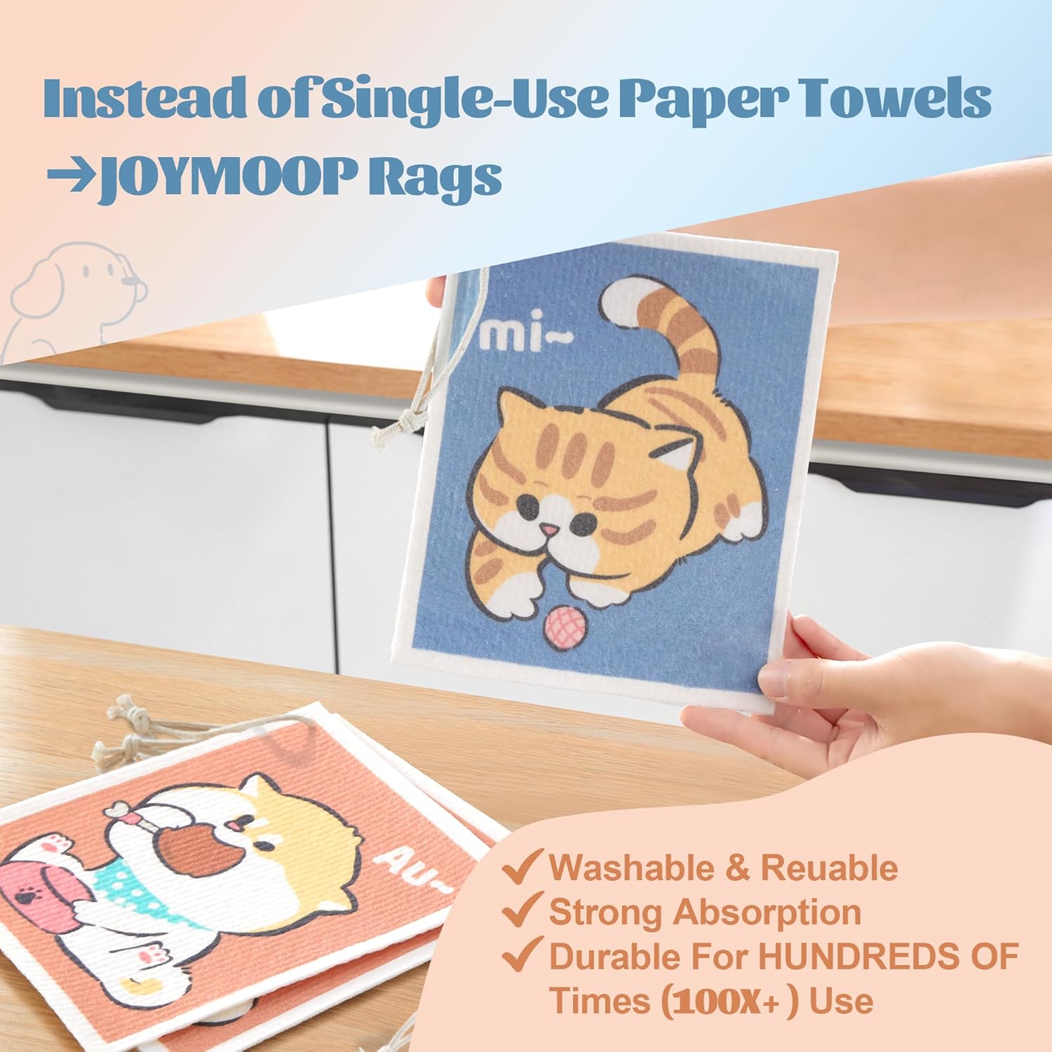 JOYMOOP Cartoon Cellulose Cleaning Cloth, Reusable Absorbent Dish Towels, Non-Scratch Washable Rags for Cookware, Kitchen and Household Cleaning - 12pcs, 6.7×7.9inch