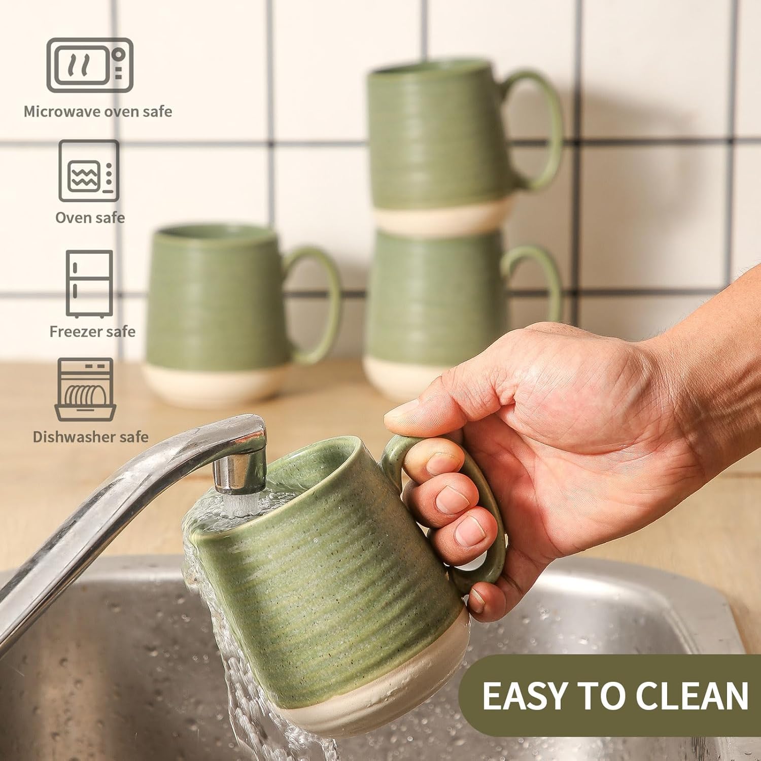 • FUNCTIONAL AND PRACTICAL: The green mugs measure 4.7*3.1*4.1inch which is large and deep to hold any of your favorite beverage. With a capacity of 15 oz, these mugs set are perfect size to hold coffee, tea, milk, cocoa, cappuccino and hot chocolate. Suitable for home, office, party and holiday.