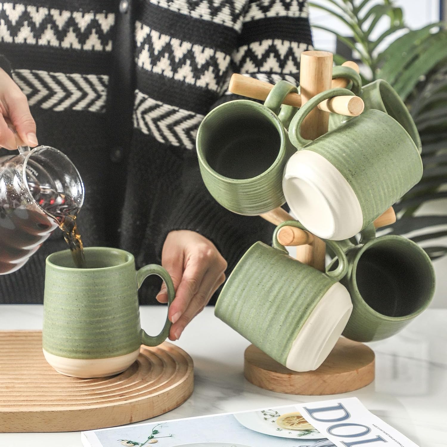 Hasense Porcelain Coffee Mugs Set of 6, 15 Ounce Large Ceramic Coffee Cups Set with Handle for Latte, Tea, Cocoa and Hot Chocolate, Green Coffee Mugs for Men and Women, Microwave Safe