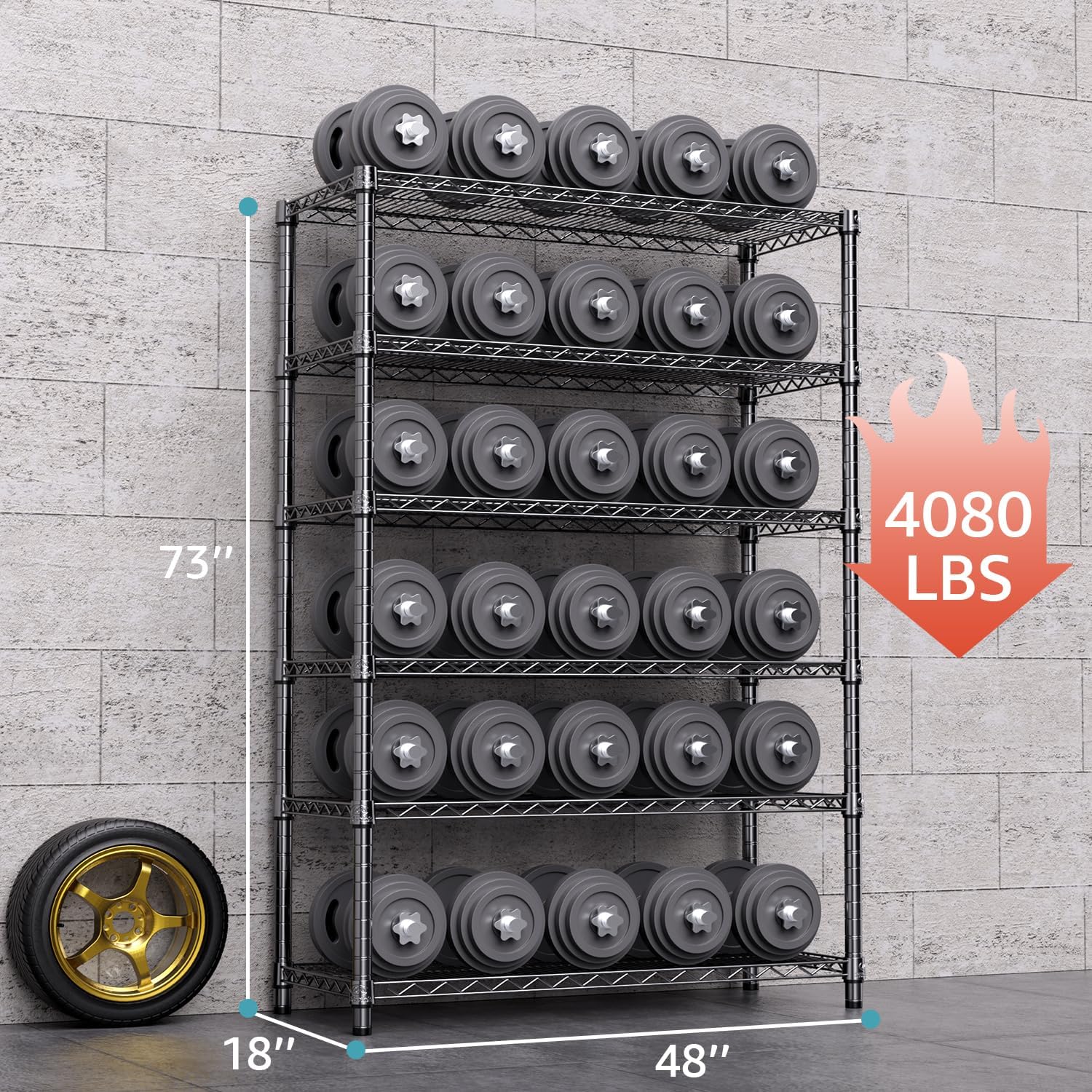 • 【STABLE AND DURABLE】Crafted from premium Carbon Steel and reinforced with 25.4mm pipes, this wire shelving unit (17.7"D x 47.2"W x 72.3"H ) ensures stability. Each shelf showcases a weight-bearing capacity of 680 pounds, while the entire unit can support up to 4080 pounds on feet/600 pounds on wheels.