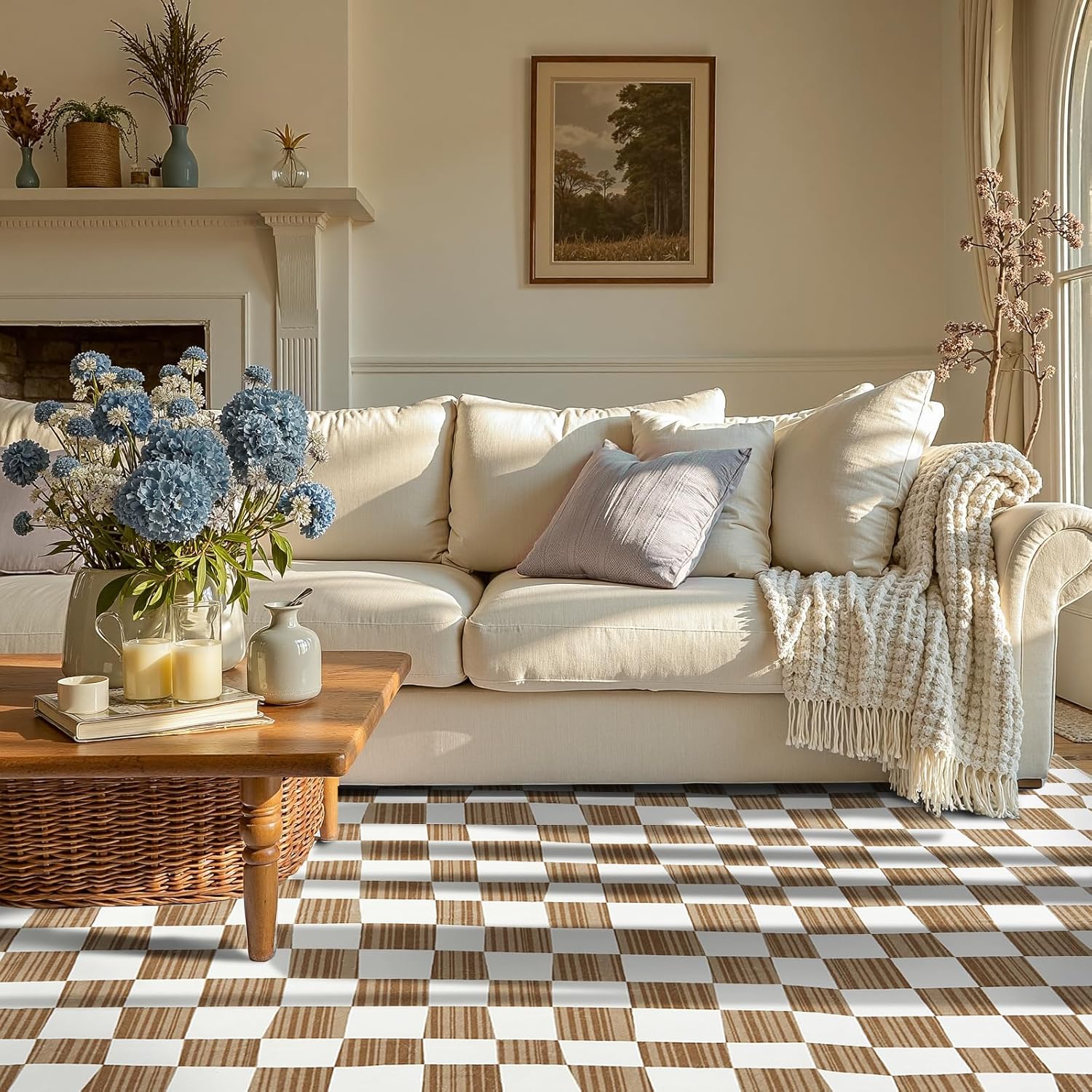 jinchan 4x6 Brown Checkered Area Rugs for Kids Room - Machine Washable Rug Modern Neutral Geometric Lattice Soft Non-Slip Carpet for Nursery Playroom Bedroom Entryway Living Room Home Office