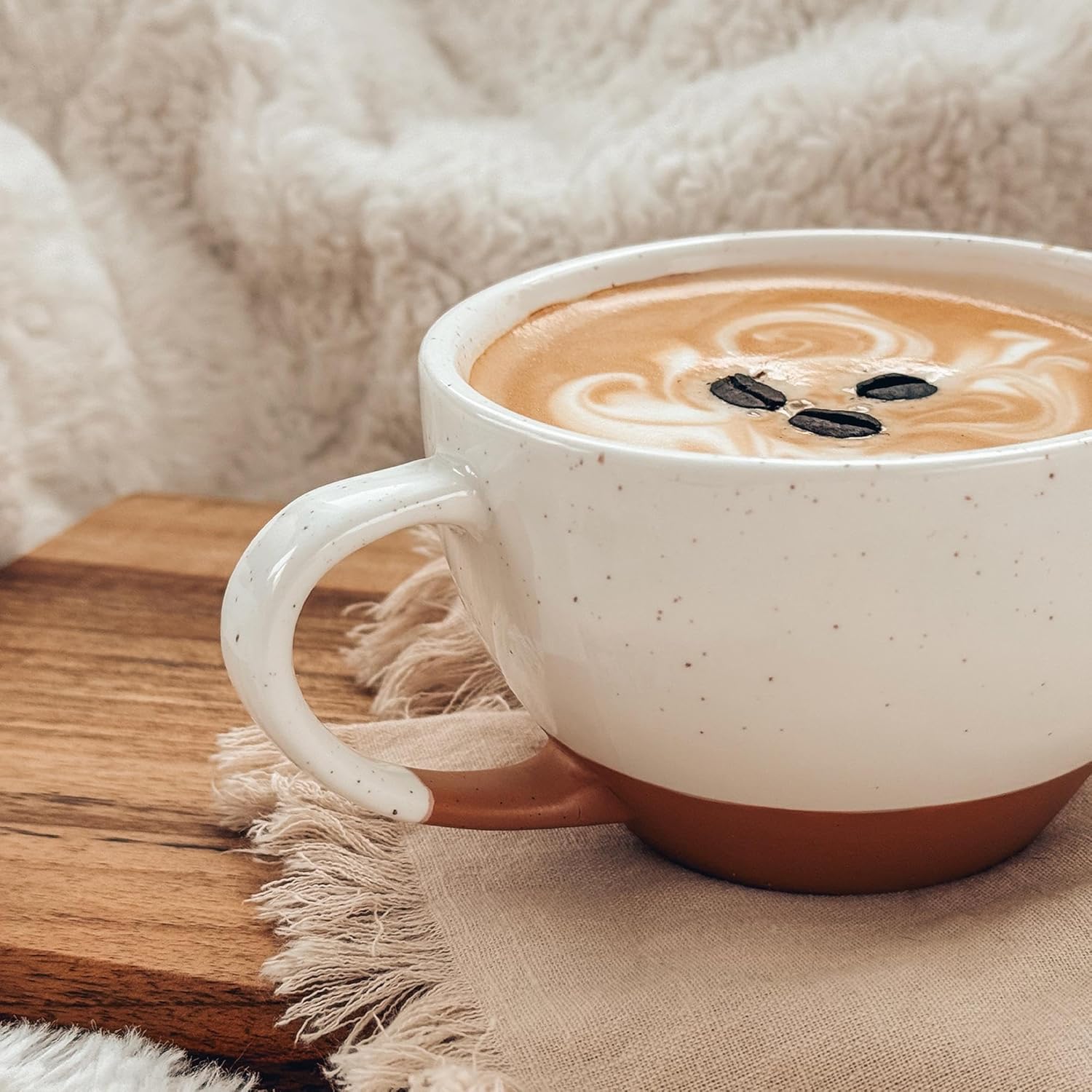 • DESIGNED FOR LATTE ART POURS: The shape of the mug has a large impact on "the perfect pour". This design offers a wide brim so there is more space to pour your design and a curved round bottom for ideal milk "flow", so you can start the latte art early in the pour. She also features thick porcelain to provide good insulation, be break resistant, and a pleasant mouth feel.