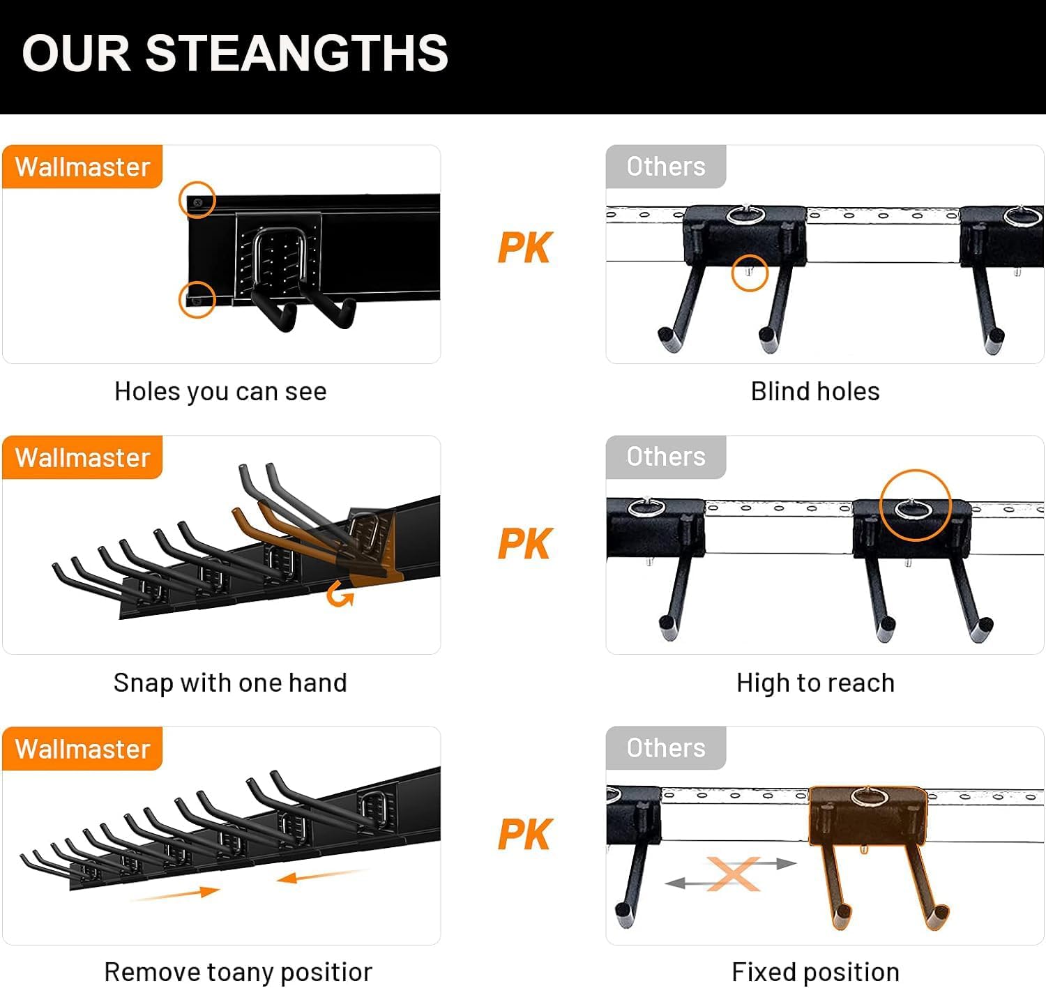 • EASILY RELOCATE→ Garage hooks can be easily repositioned anywhere on tracks of the panel when storage needs change. And fast wall-mount hooks can install in a snap