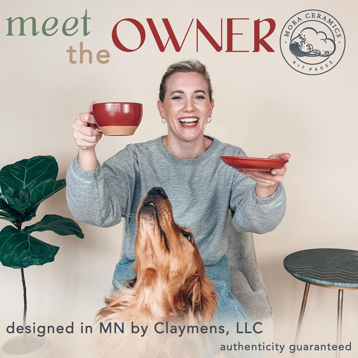 Mora Ceramic Latte Art Mug With Saucer - 10.5 oz, Round Bottom For Perfect Pours - Cafe Cups for Cappuccino, Espresso, Coffee, Tea etc - Porcelain Set for Baristas, Great Gift - Crimson Red