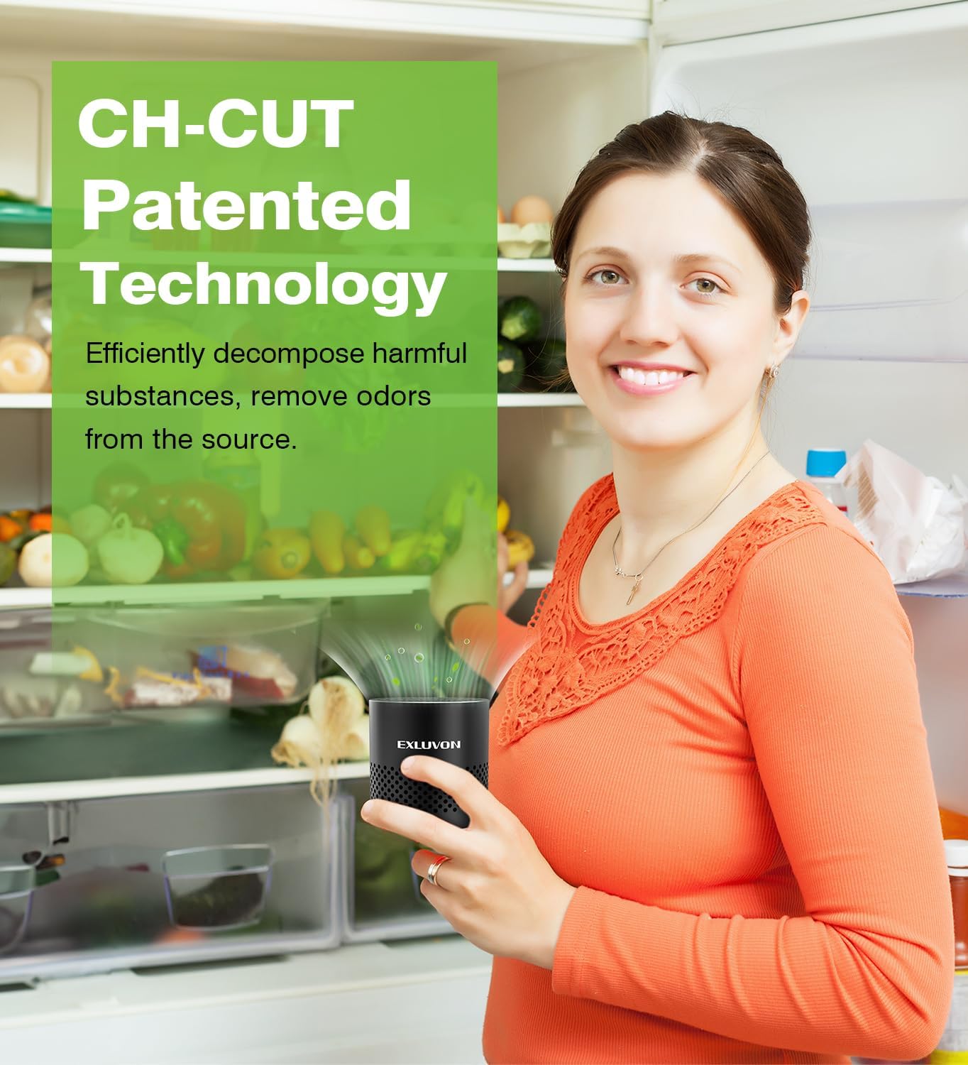 • Advanced Technology Fridge Deodorizer:Are you still troubled by the difficult-to-remove odors in your daily life? Choose Exluvon air purifier, which can efficiently decompose harmful substances in the air, eliminating odors at the source with a more thorough and long-lasting effect. Its core technology has been recognized with multiple international awards, worthing your trust.