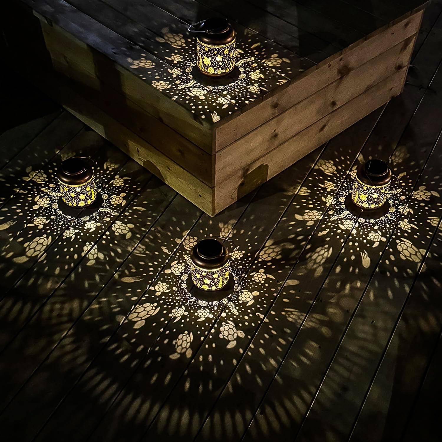 • 【Perfect Garden Decorations】Sea Turtle solar lantern can project unique and beautiful patterns in a dim environment,creating a gorgeous and warm atmosphere to bring life and fun to your garden and attract your family or friends.The unique hollow out design and beautiful antique bronze color give it an artistic touch,perfect for decorating gardens,backyards,corners,Outside,sidewalks and many other scenes