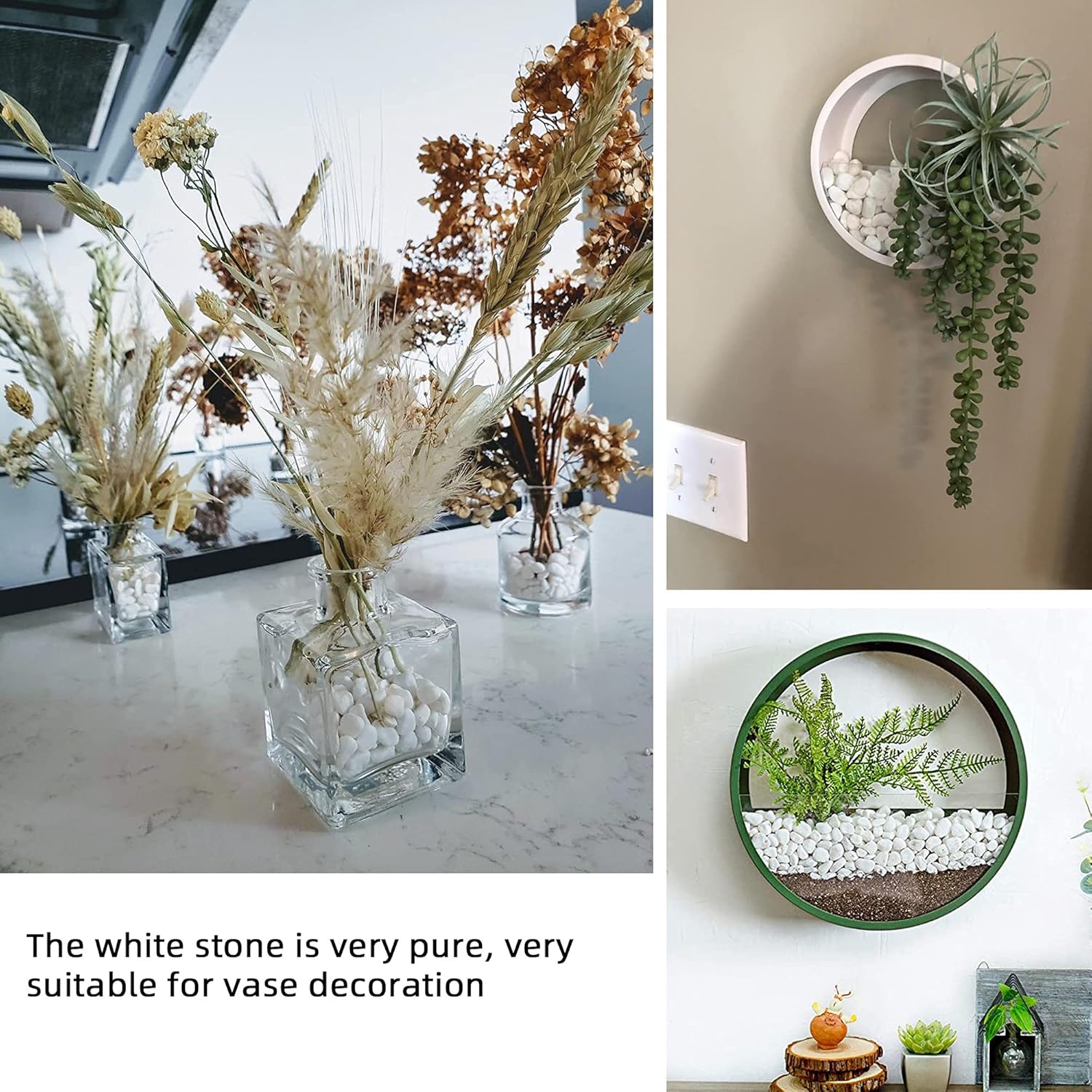 • 🌼【WIDE USES】Common applications include succulent containers, potted plants,vases,cactus,bonsai,landscapeand terrariums.It is perfect for home decor and a creative interior and exterior design. The possibilities are endless with these floral arranging white gravel rocks!