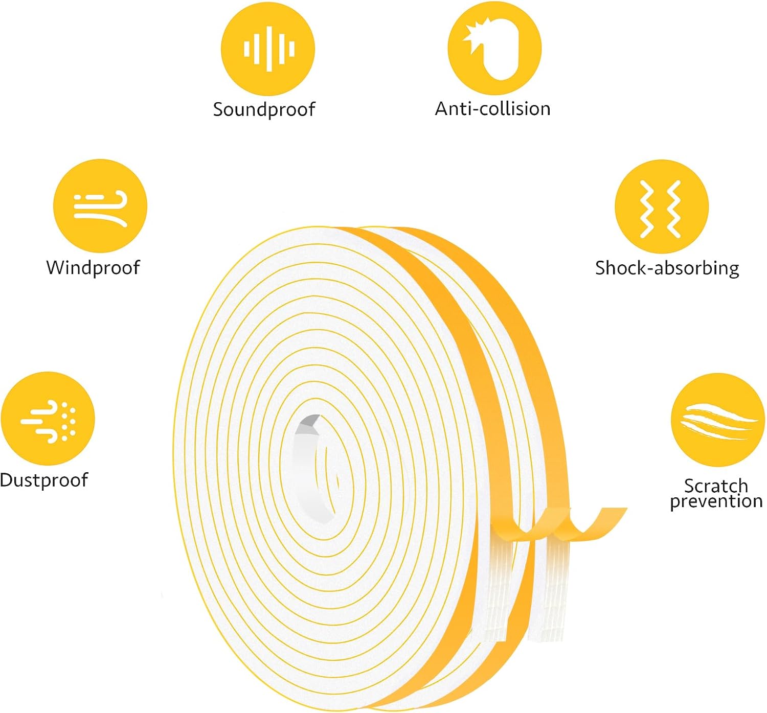 • 🟠2 ROLLS VALUE PACK-This package includes 2 rolls of 1/2 in x 1/4 in x 26Ft high density door insulation strip, total 52Ft in length, which means that two rolls foam seal tape are packed together.