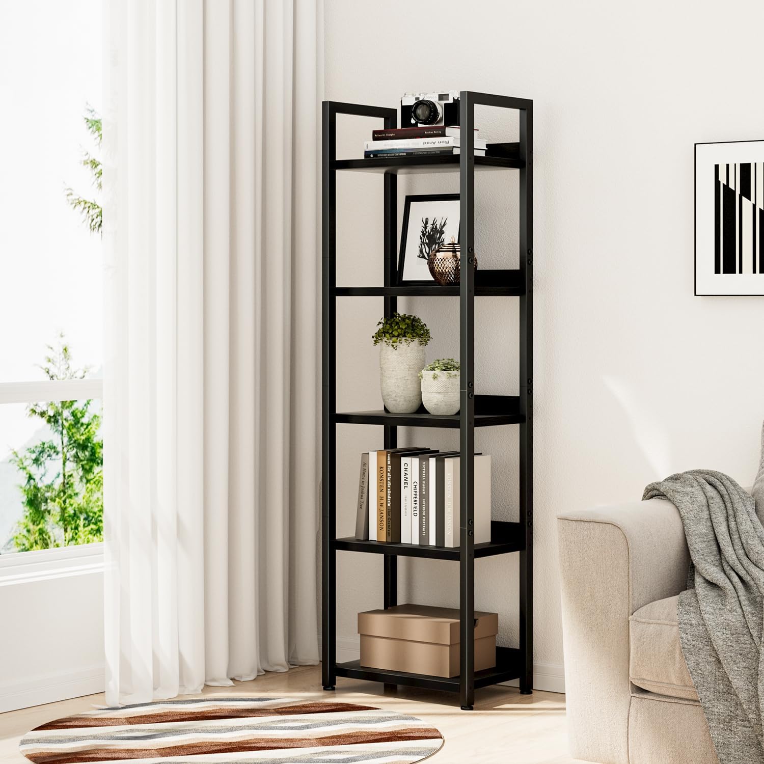 NUMENN Narrow Bookshelf, 5 Tier Bookshelves, Home Office Bookcase Shelf Storage Organizer, Free Standing Storage Shelving Unit for Bedroom, Living Room and Home Office, Black