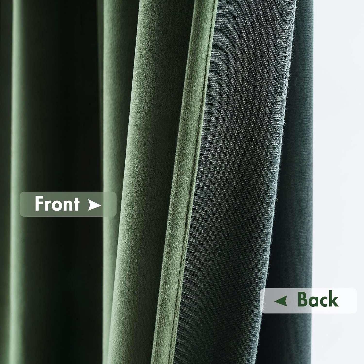 MIULEE Olive Green Velvet Curtains Thermal Insulated Blackout Curtain Drapes for Bedroom Living Room Darkening 100 Inches Long Curtains Panels Rod Pocket Set of 2