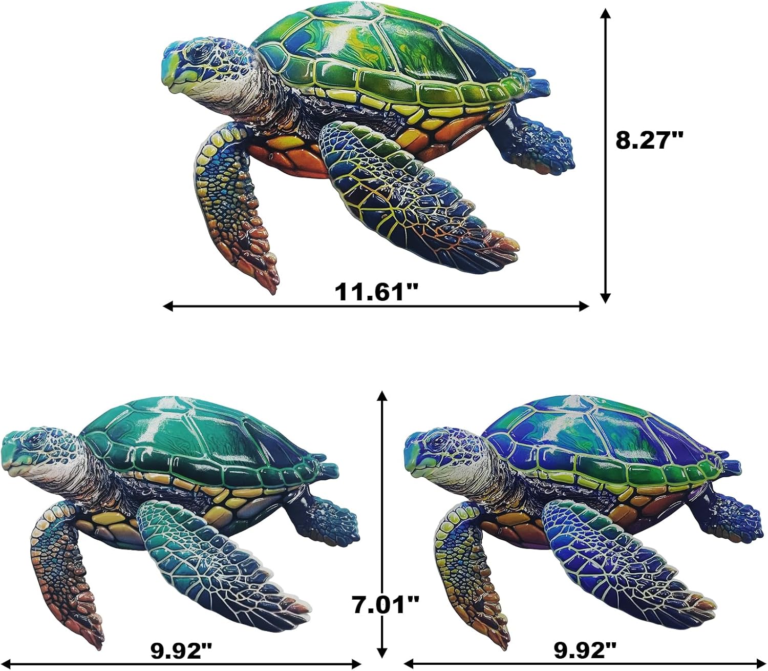 • Product Details - You will get include 3 piece turtle decoration - Measure 8.2 x 11.6 inches. The vivid metal turtle wall decor matches is perfect for any decor style and can be displayed in bedroom, living room, office, study, baby room, kitchen, yard, porch, patio, garden and more