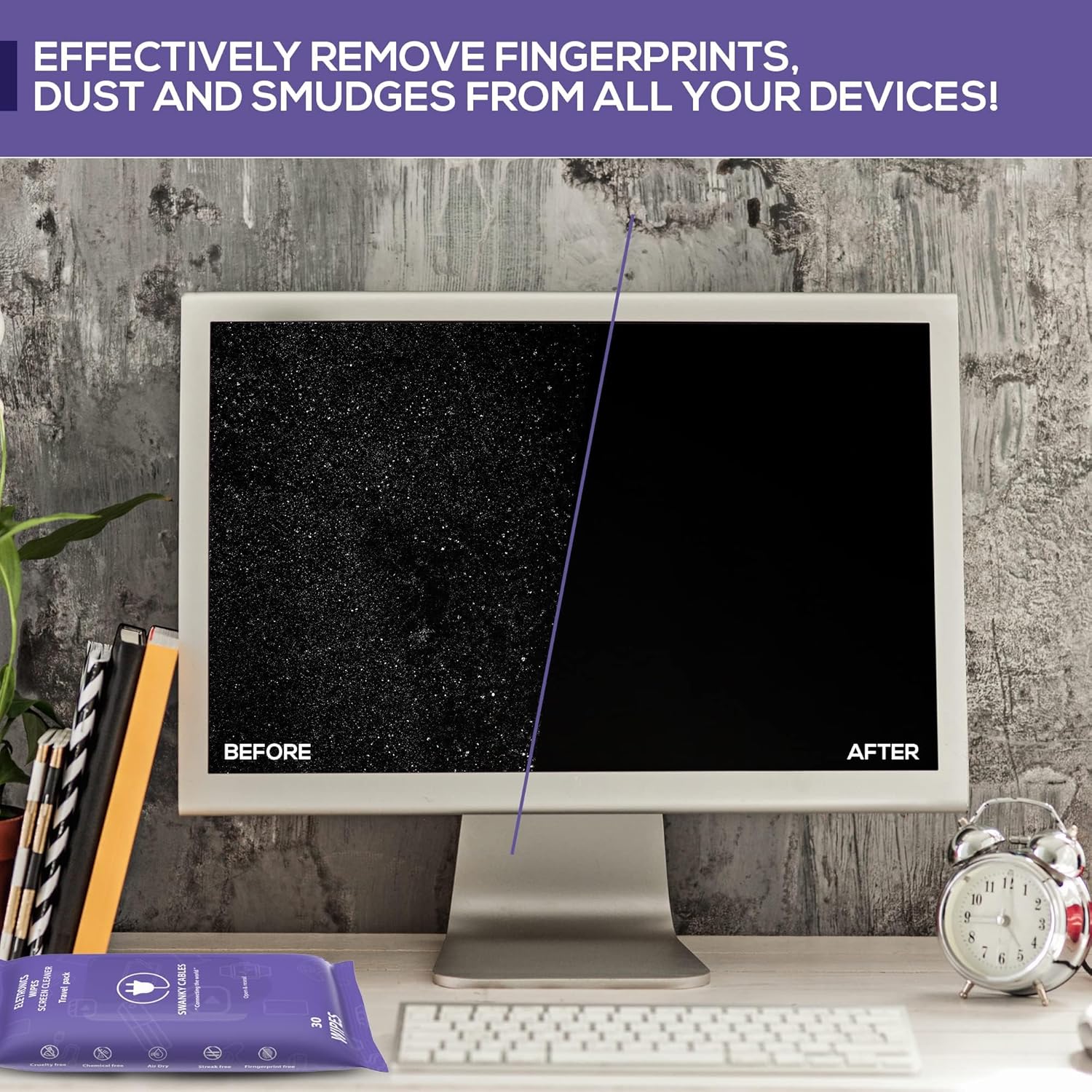 • ALL-IN-ONE CLEANING SOLUTION Our non-scratch electronic screen wipes can be used for tablets, smartphones, laptops, TVs, monitors or even your own glasses!