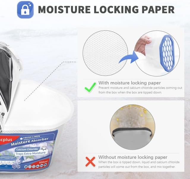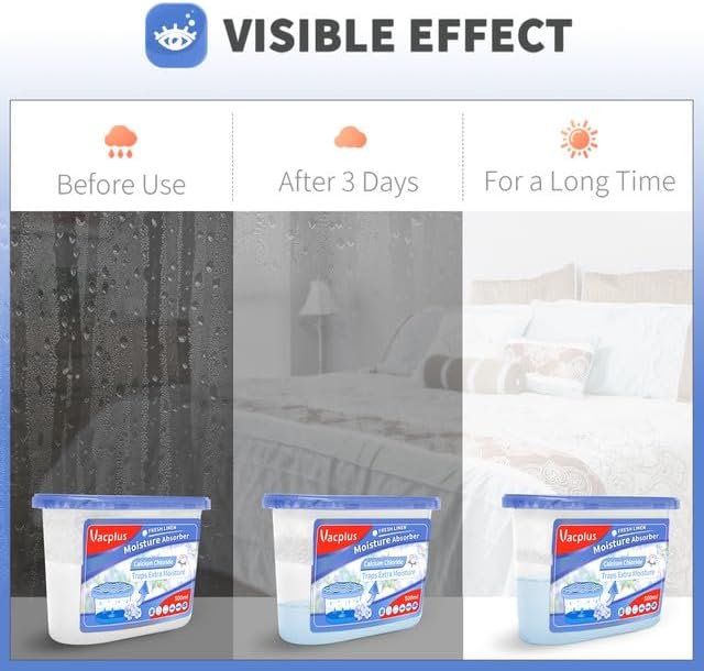 • Premium Quality: To prevent water leakage, Vacplus Closet moisture absorber designs with unique lock wet paper and high-quality collecting layer. This dehumidifier remover works great for your bathroom, basement, kitchen, laundry room, etc.